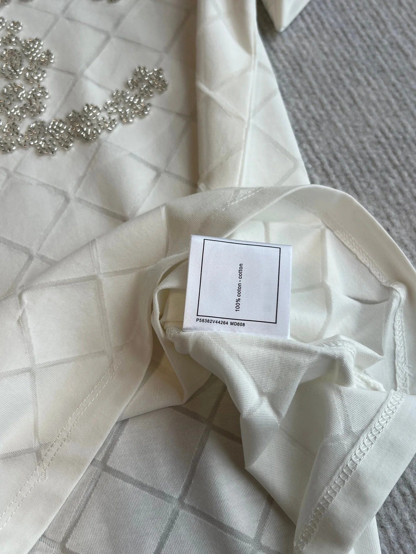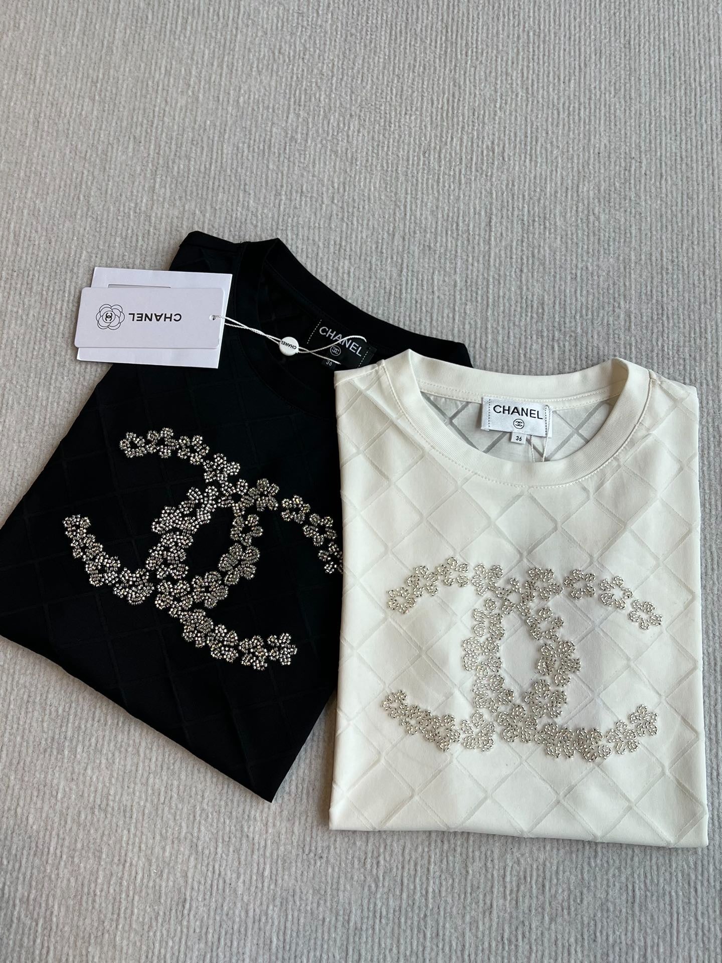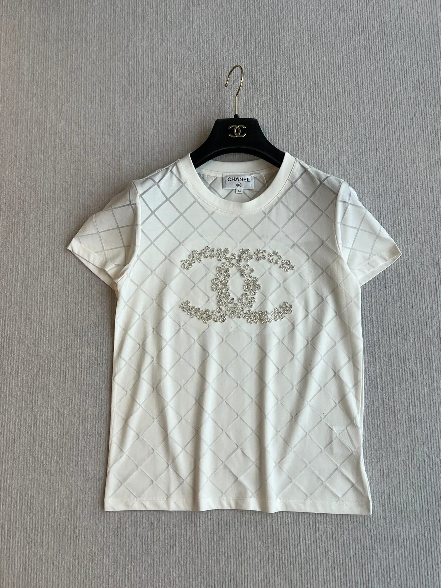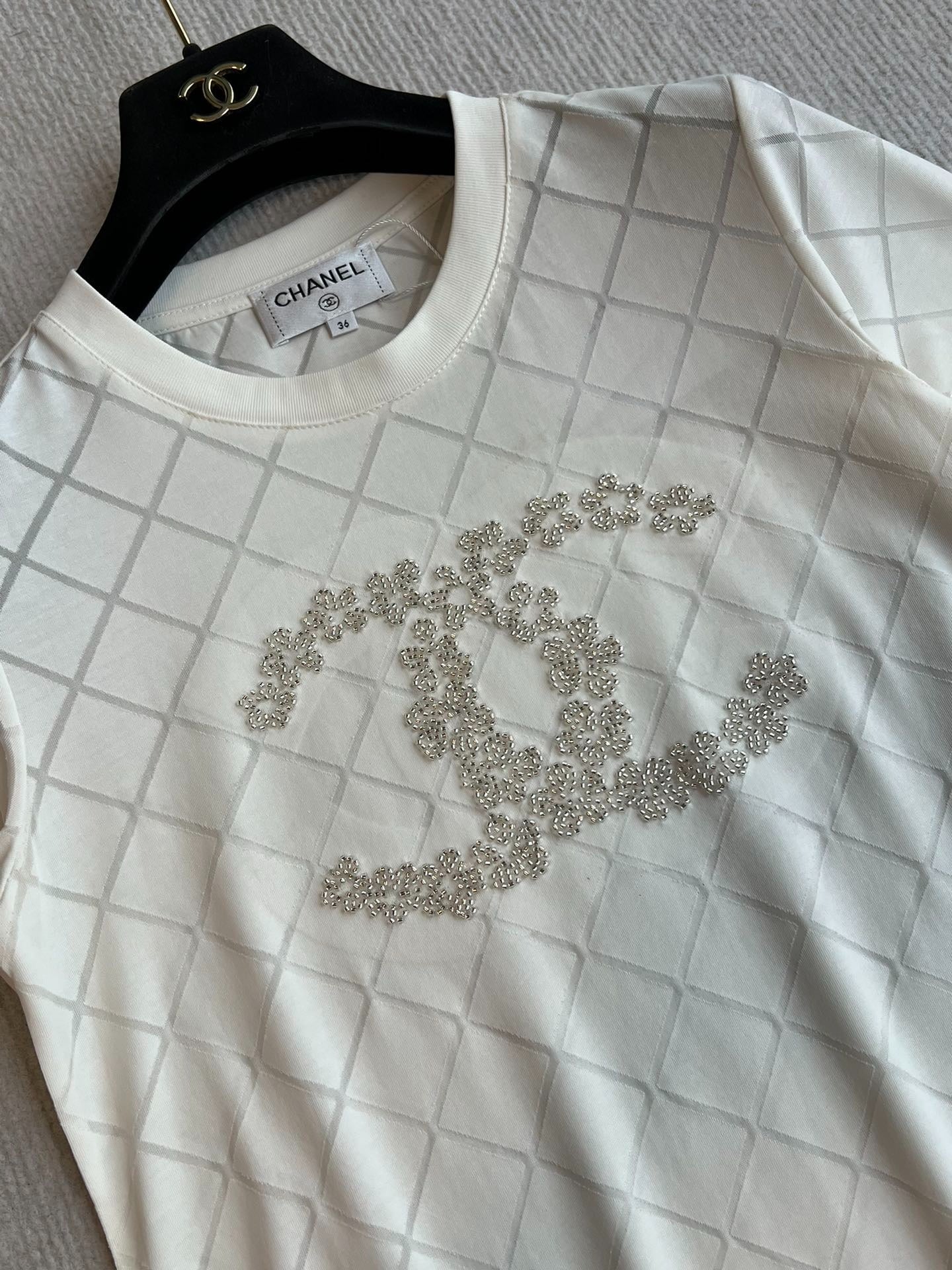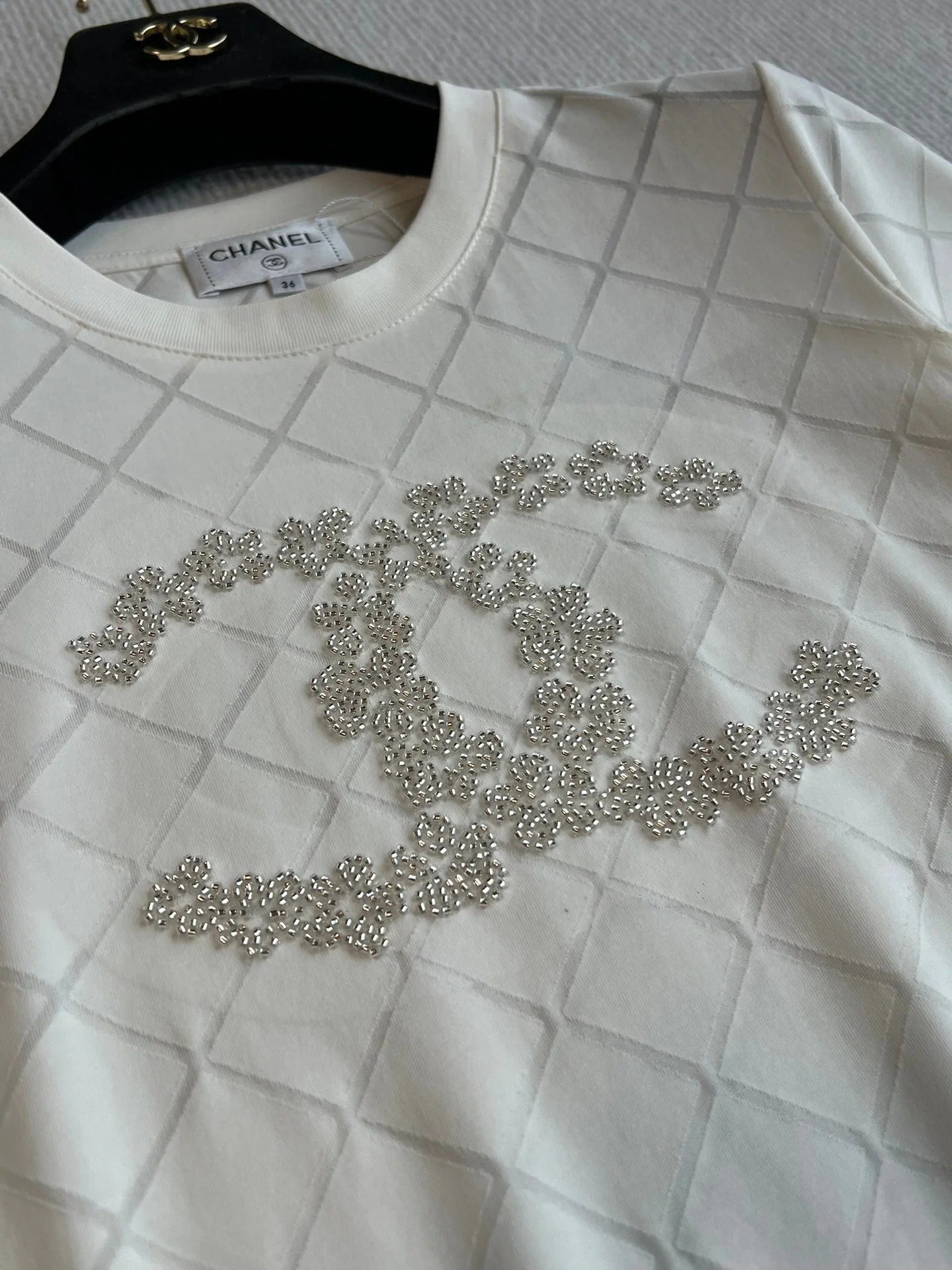 CHANEL WHITE SHORT-SLEEVE EMBELLISHED T-SHIRT