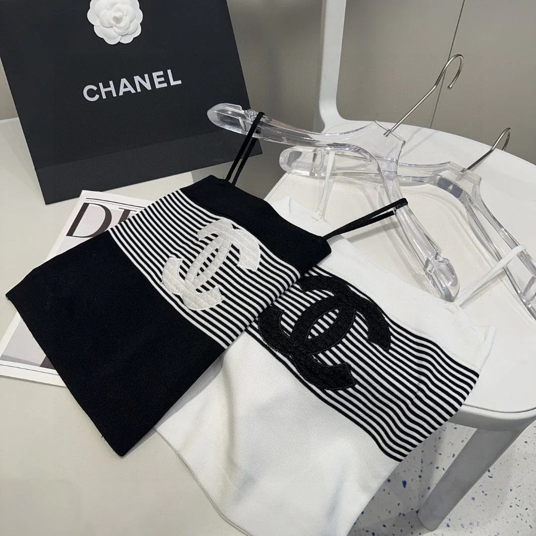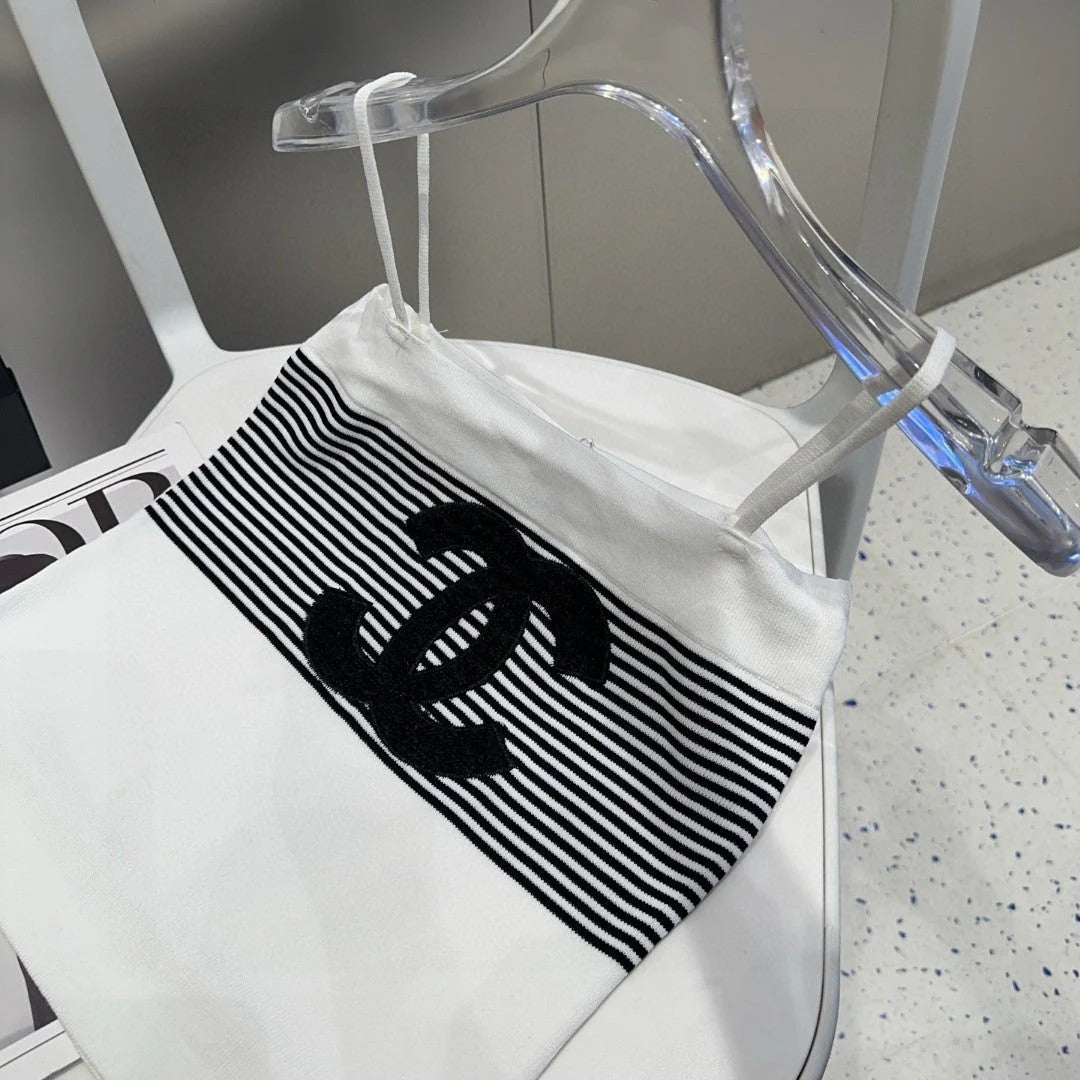 STRIPED CAMISOLE 610344 IN BLACK AND WHITE COTTON RIBBED