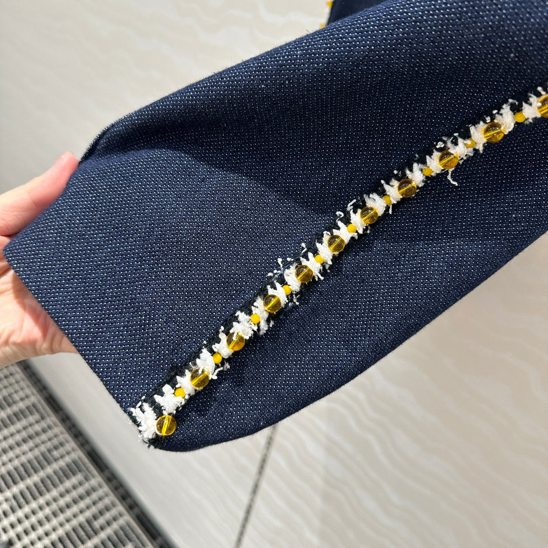 CC 25 Embroidered Vest Jacket Blue Denim Cotton