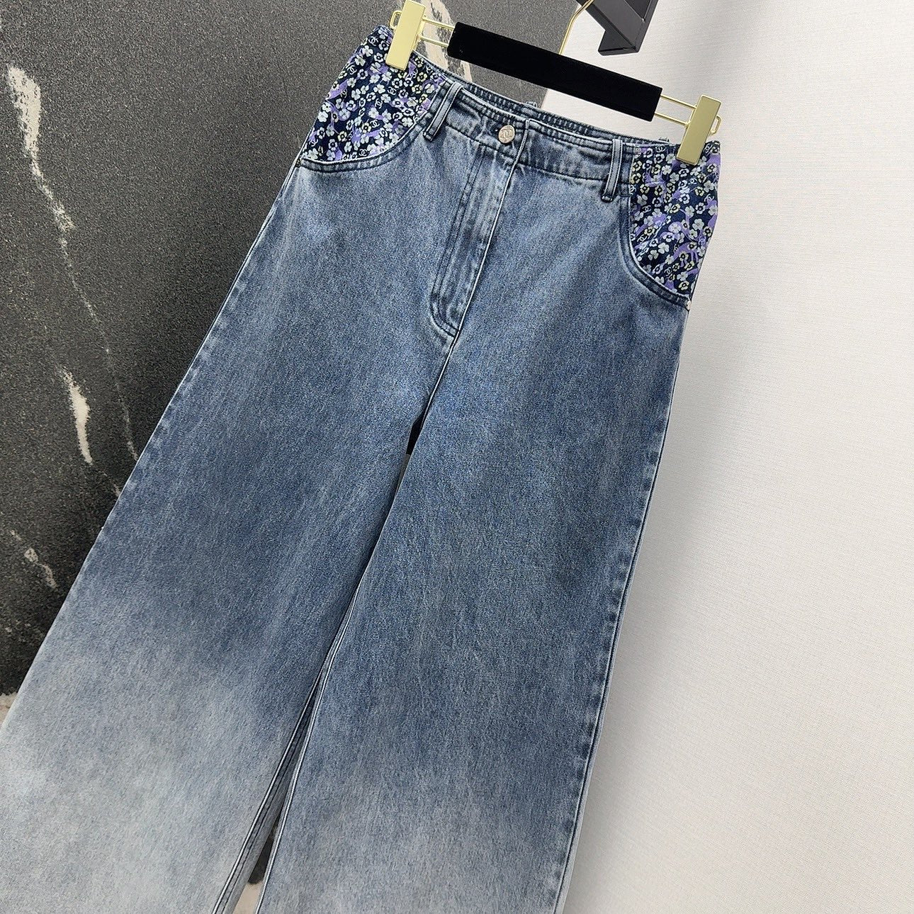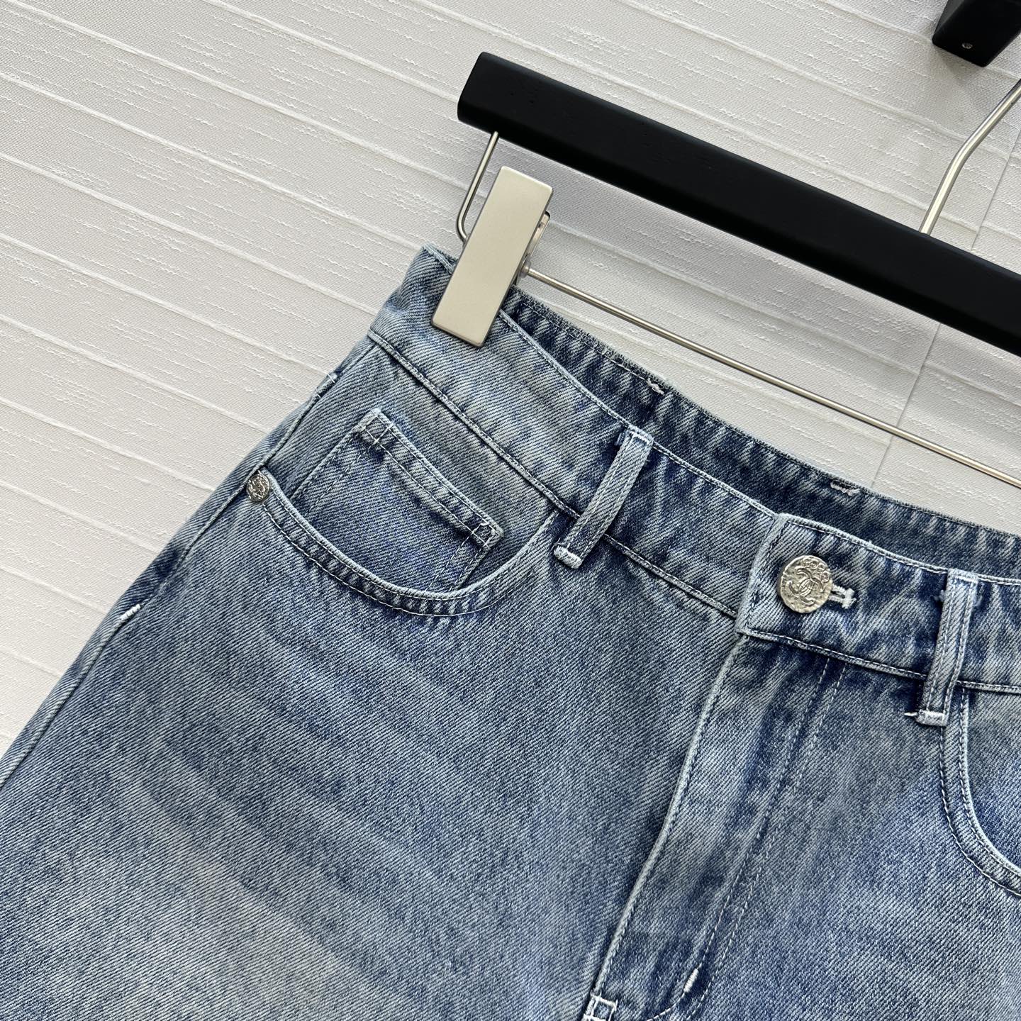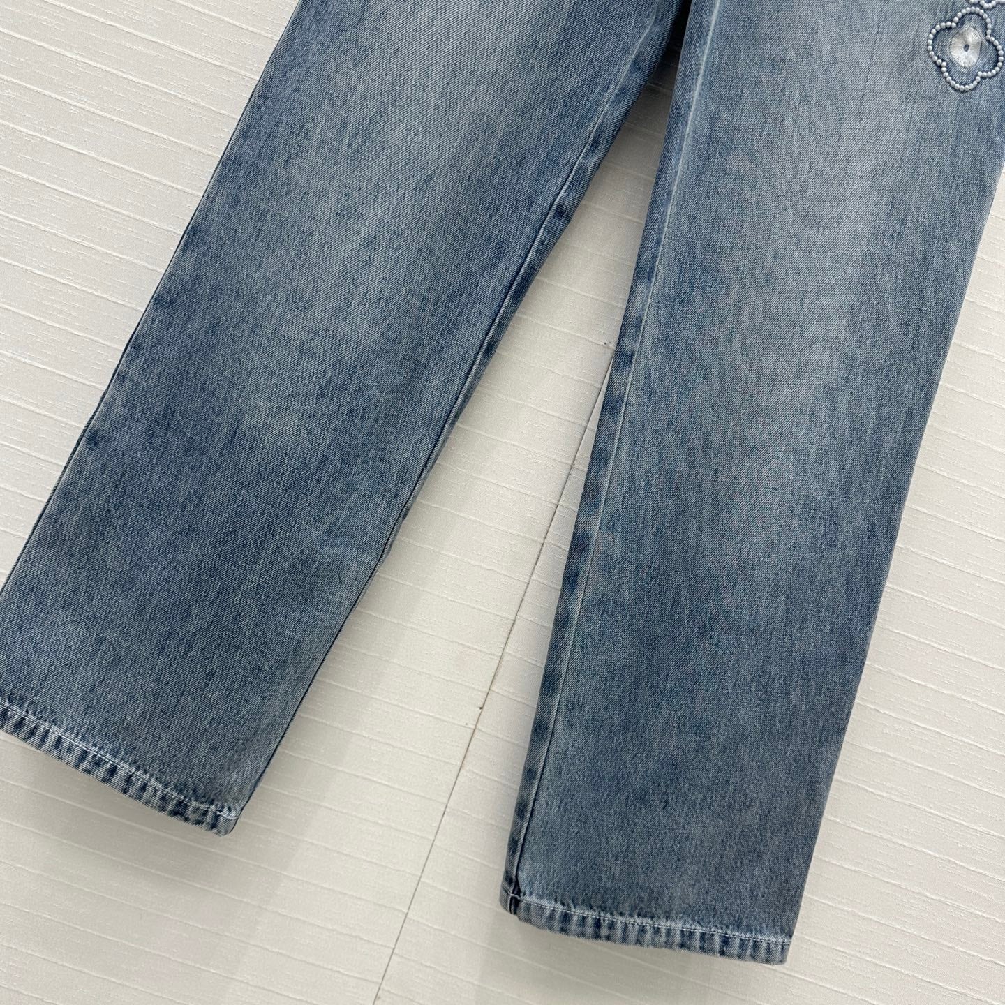 CC 25 Hollow Camellia Embroidery Jeans Light Blue Denim Cotton
