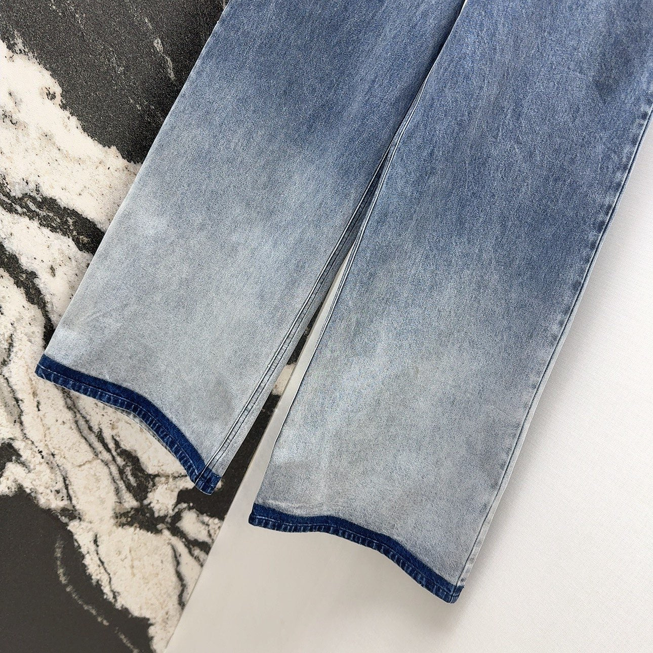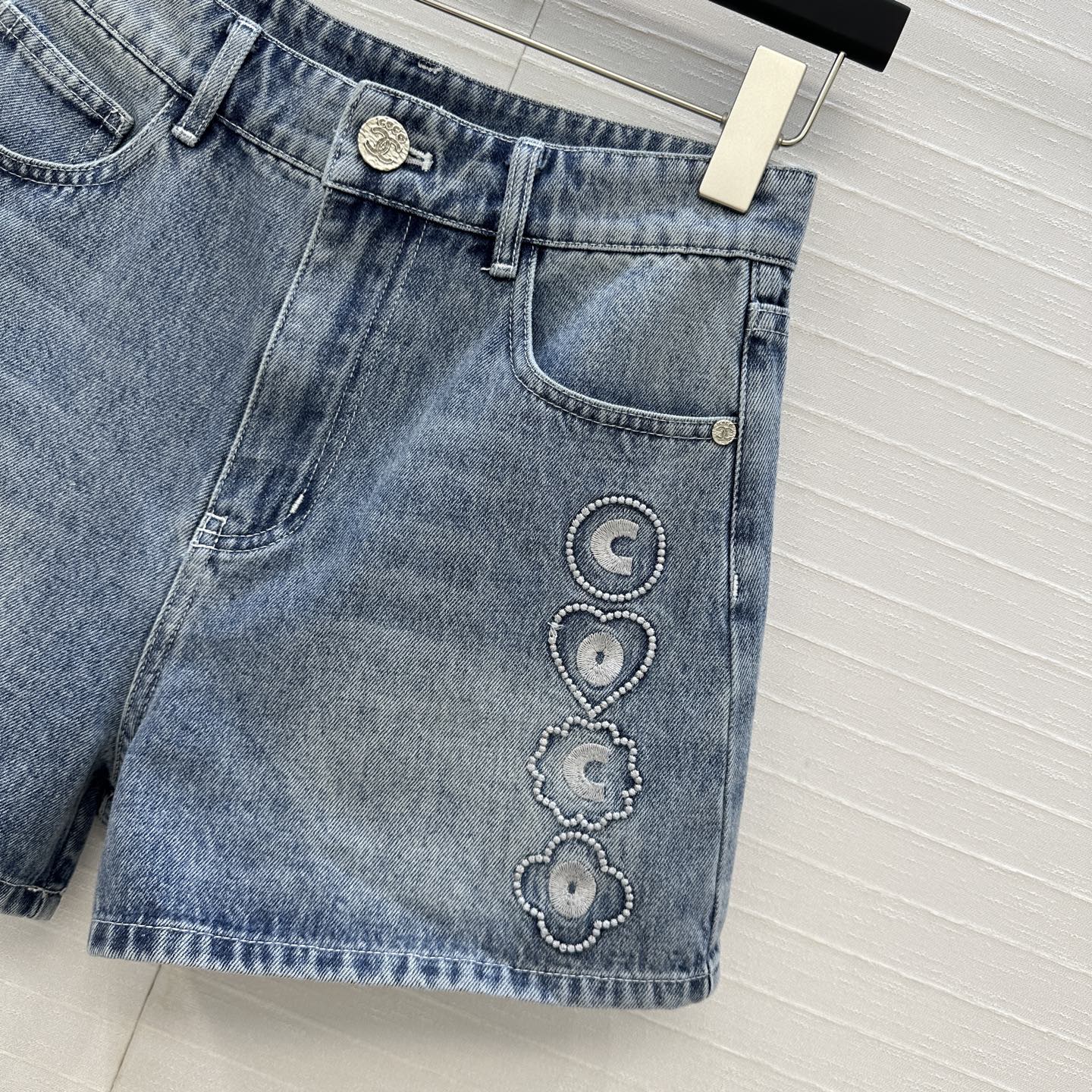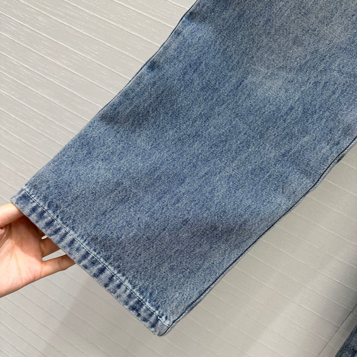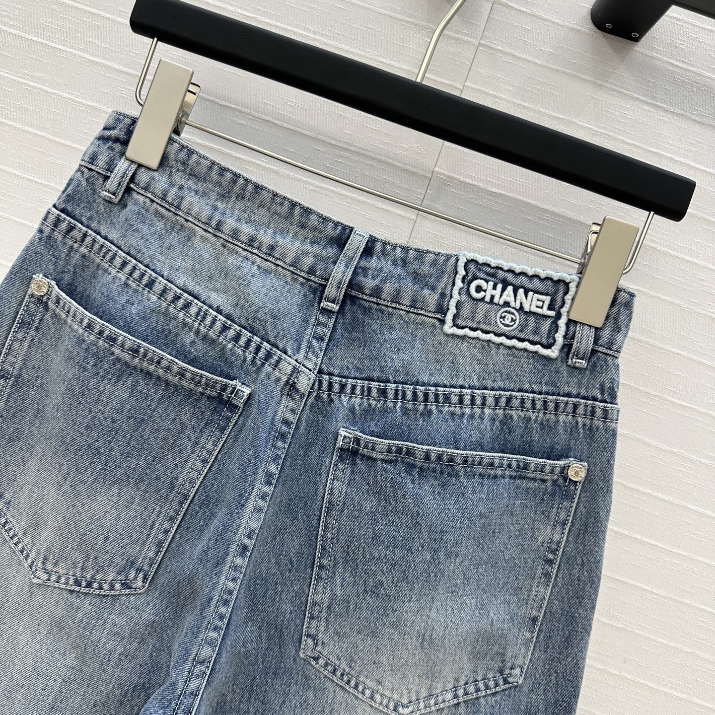 CC 25 Hollow Camellia Embroidery Jeans Light Blue Denim Cotton