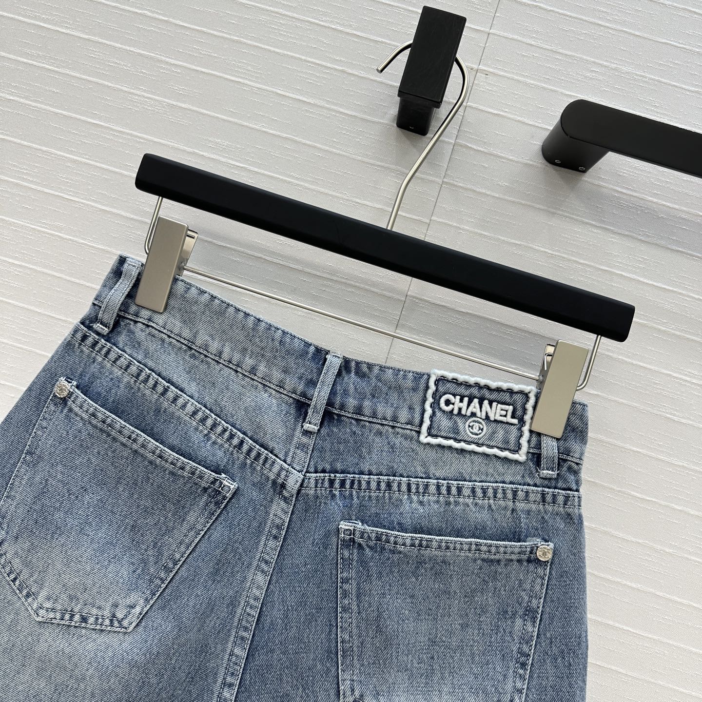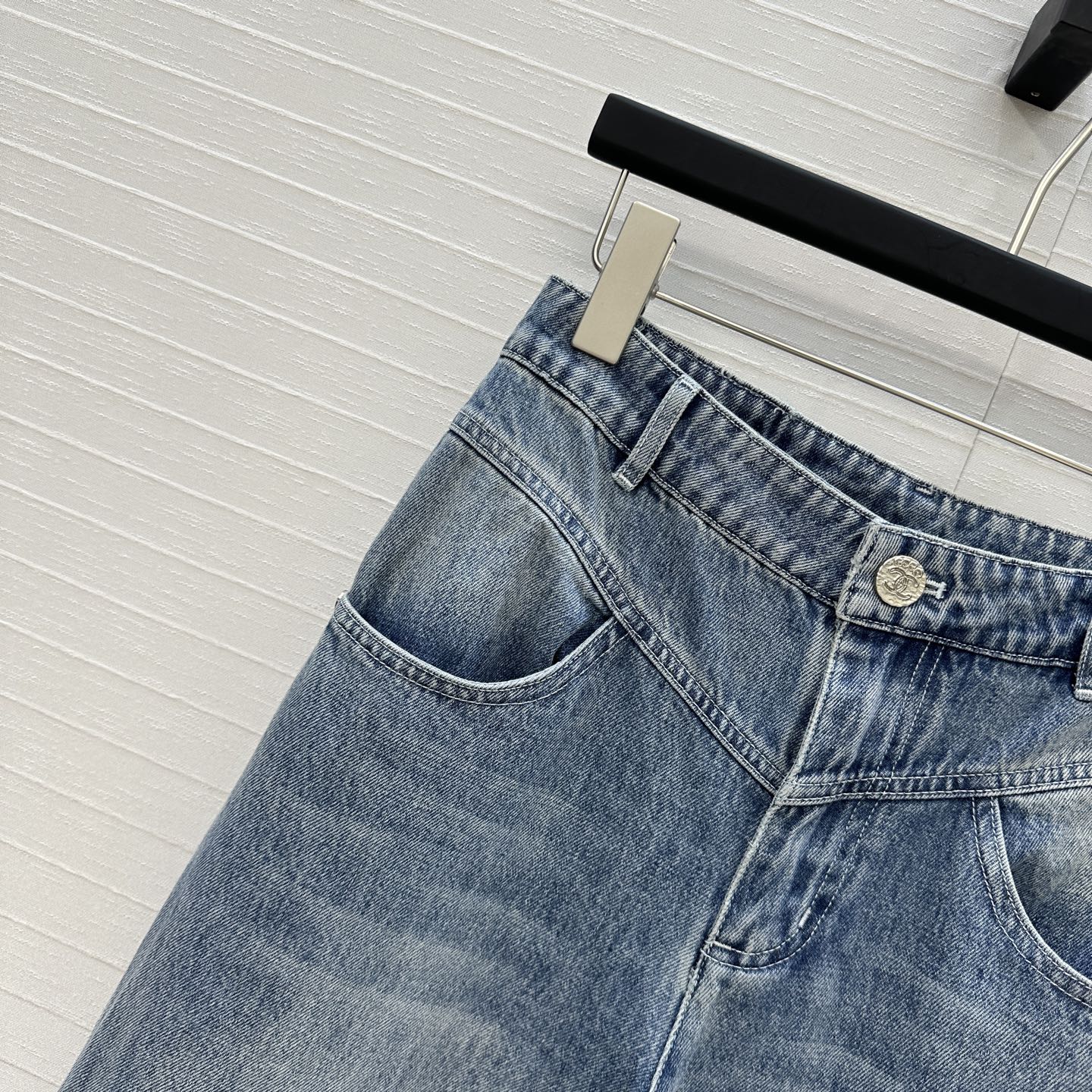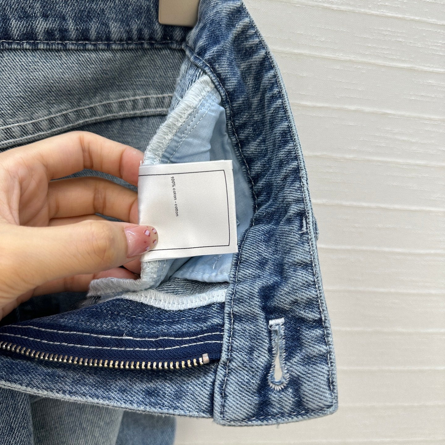 CC 25 Embroidered Short Skirt Blue Denim Cotton