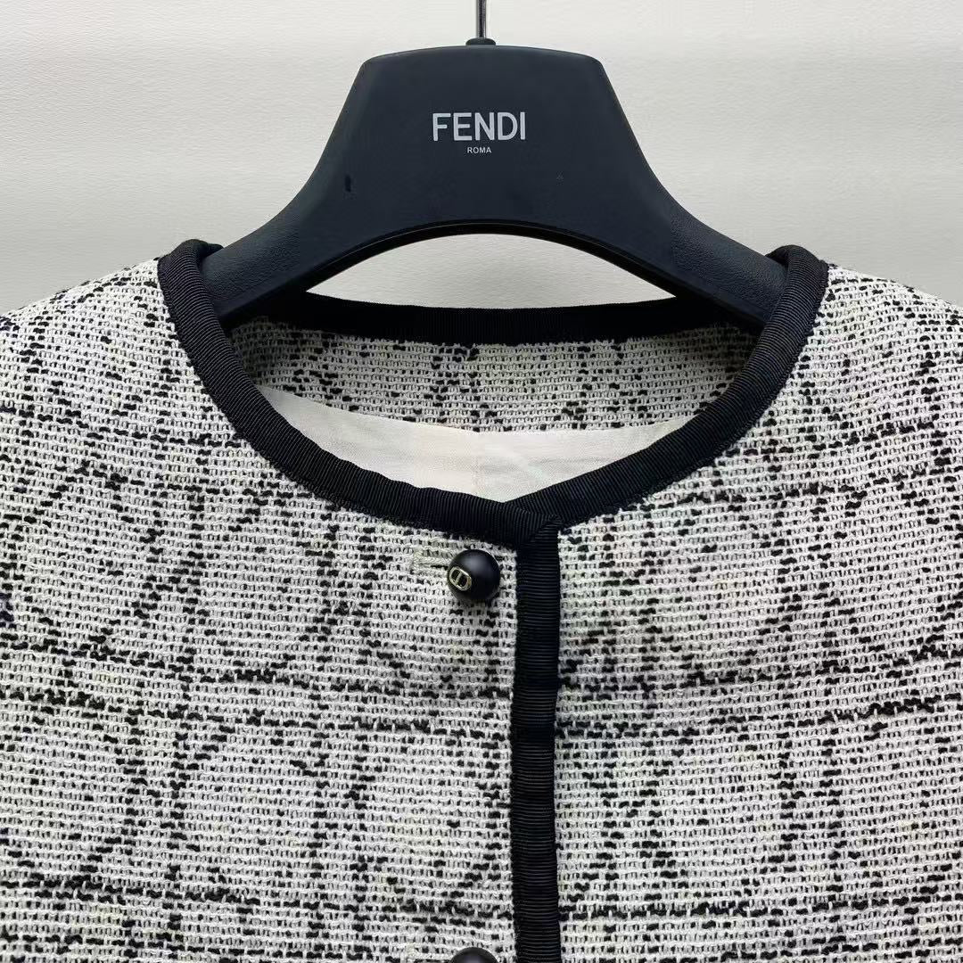 CC Tweed Fur Coat Black White Cotton Polyamide 251826