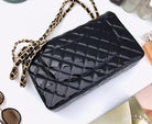 CLASSIC JUMBO FLAP BAG 30CM BLACK PATENT CALFSKIN GOLD HARDWARE