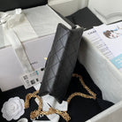 FLAP BAG 20 IN BLACK CALFSKIN GOLD CHAIN
