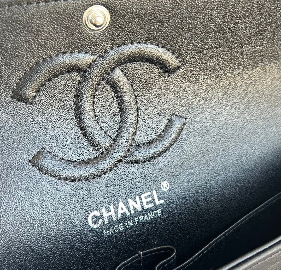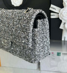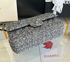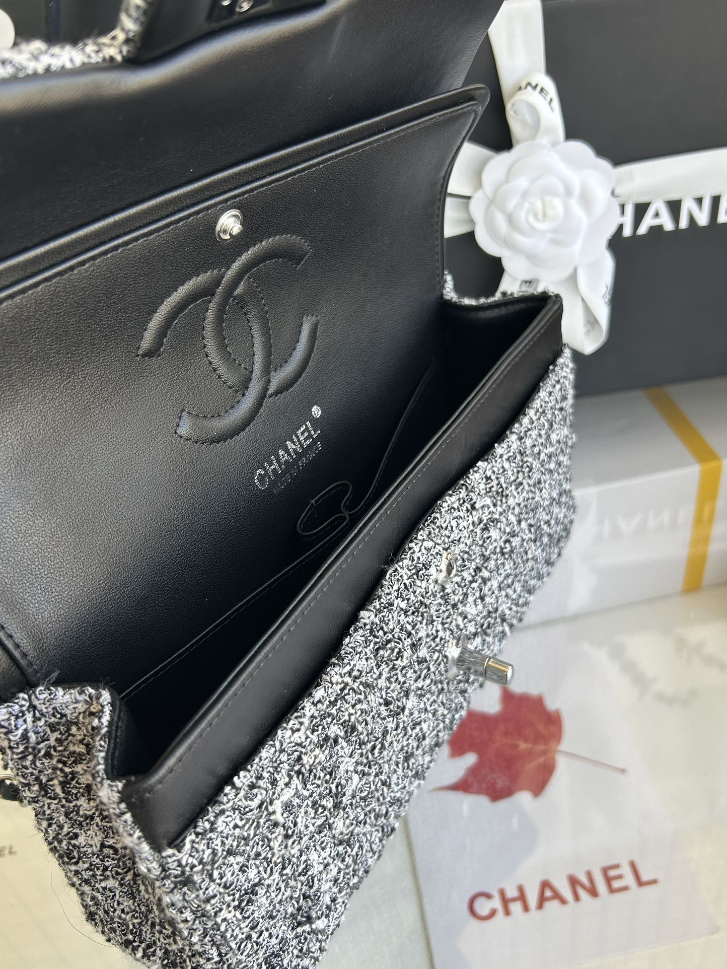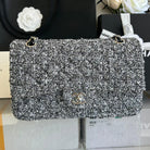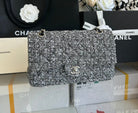 MEDIUM FLAP BAG 25 IN LIGHT GRAY TWEED SILVER HARDWARE
