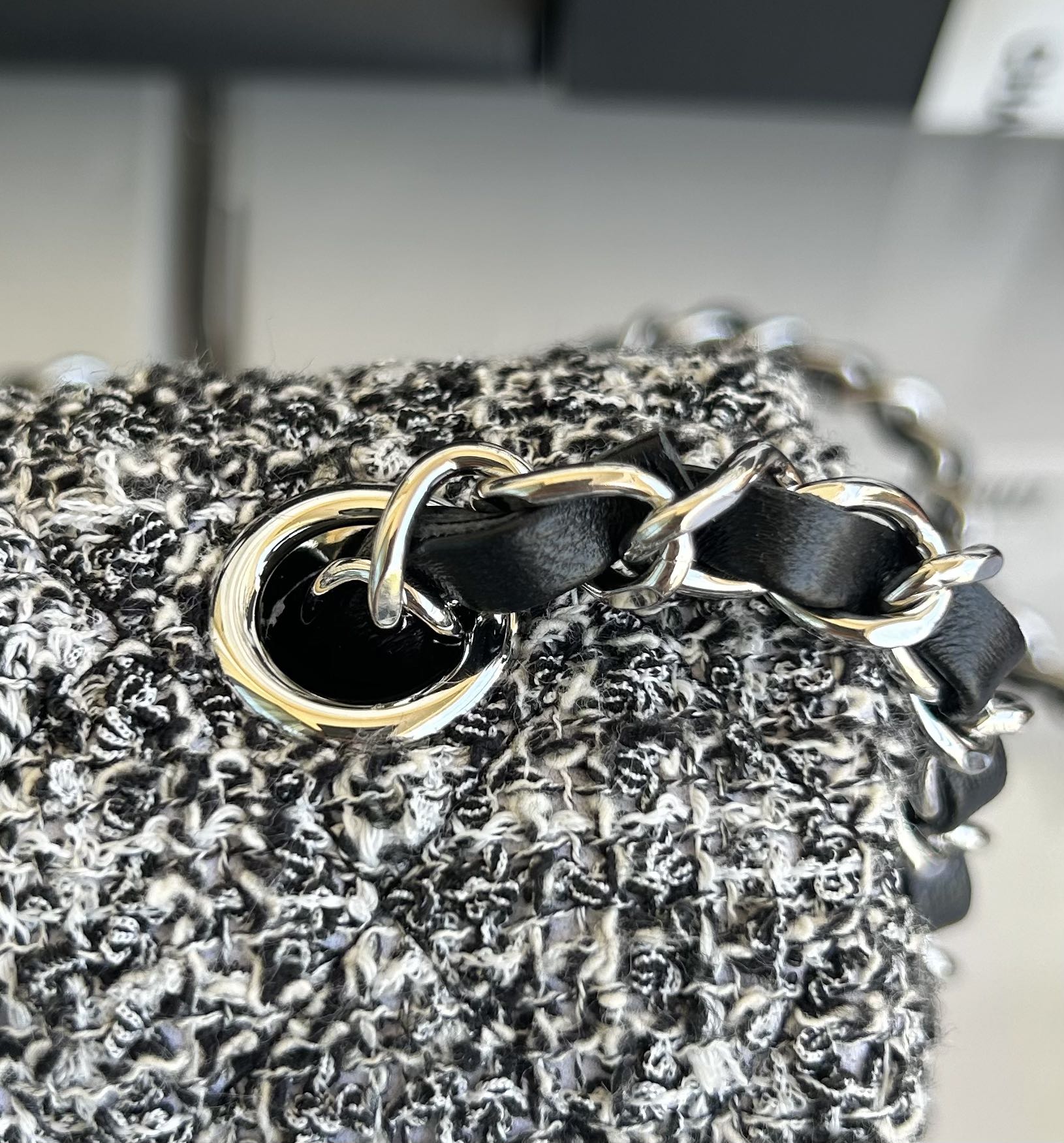 MINI FLAP BAG 20 IN LIGHT GRAY TWEED SILVER HARDWARE