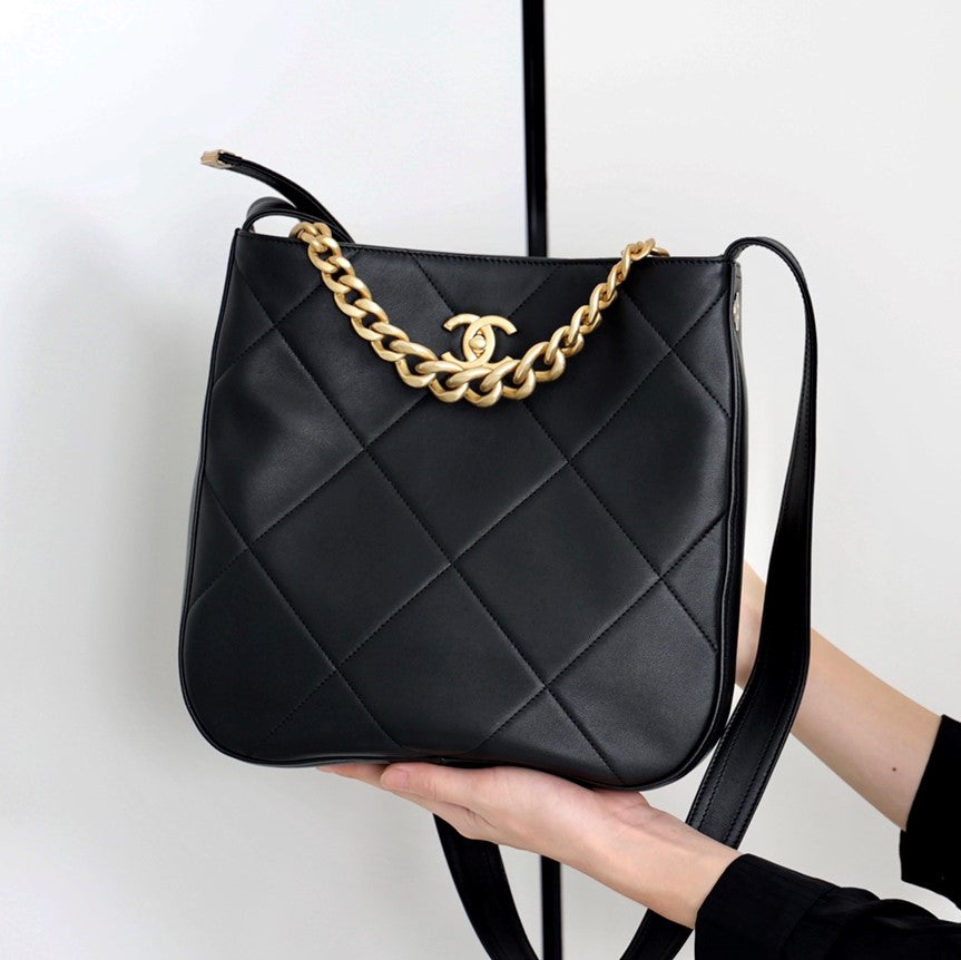 CC 21s Easy Mood Hobo Quilted 28cm Black Cowhide GHW