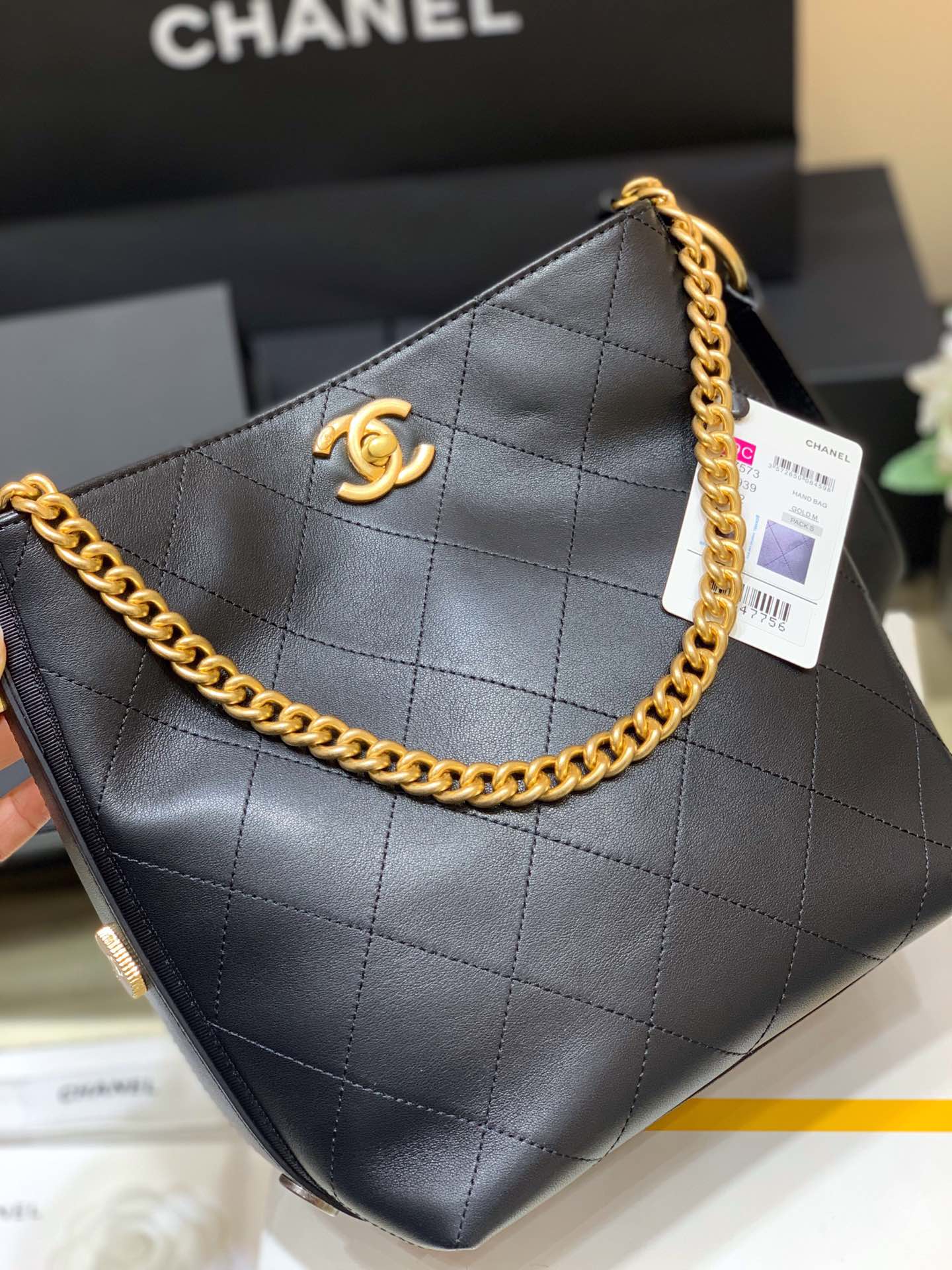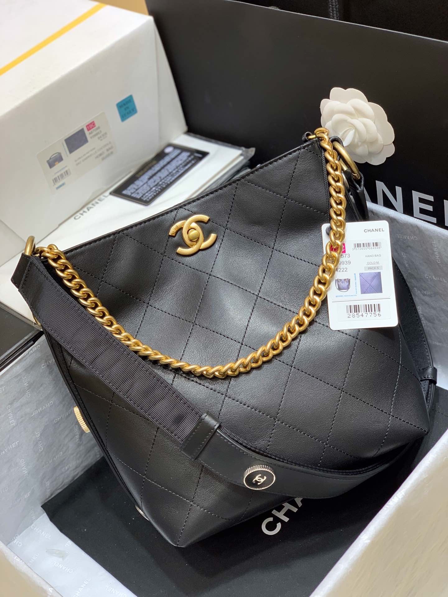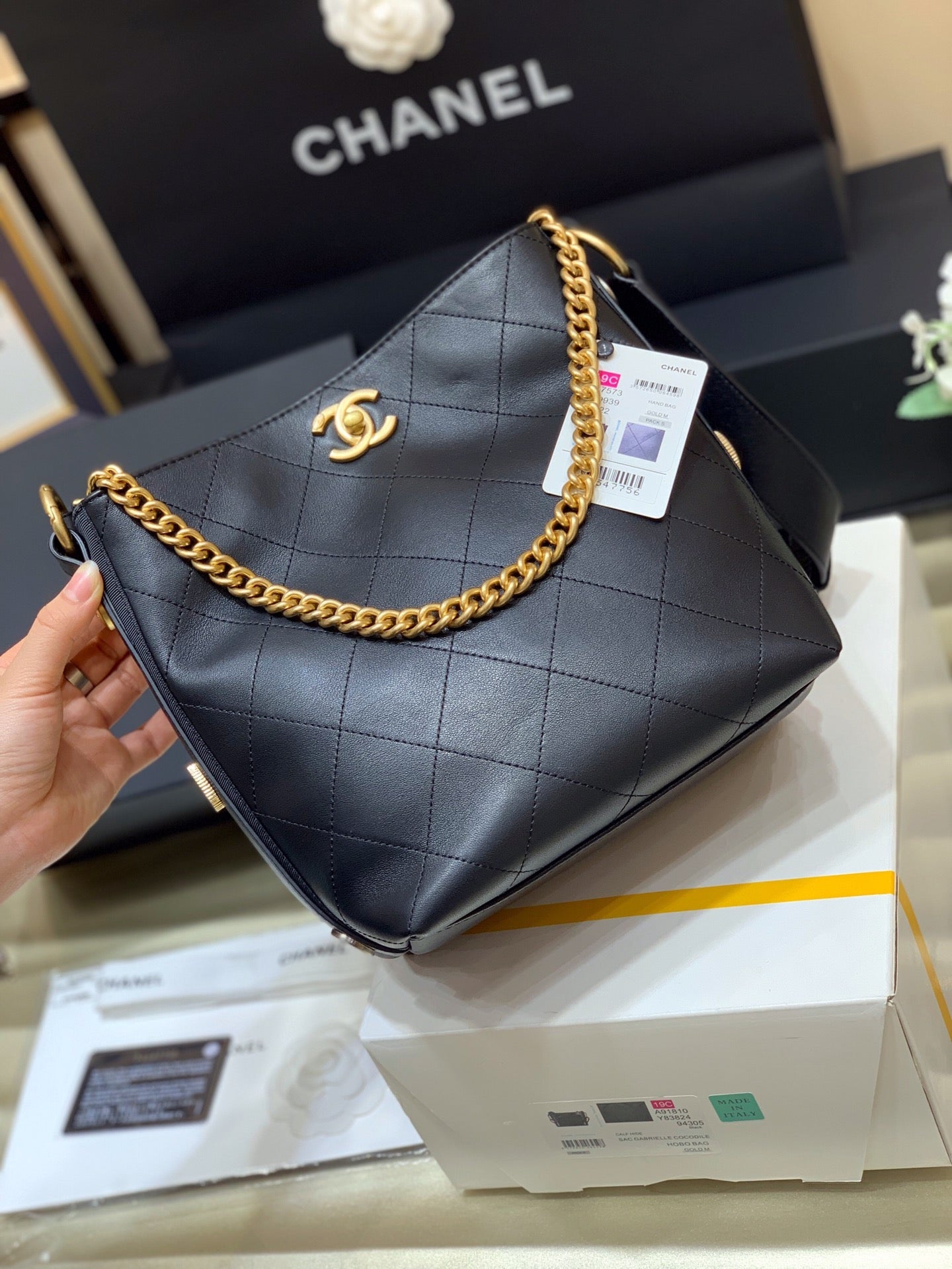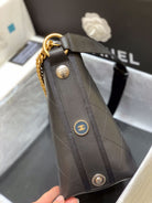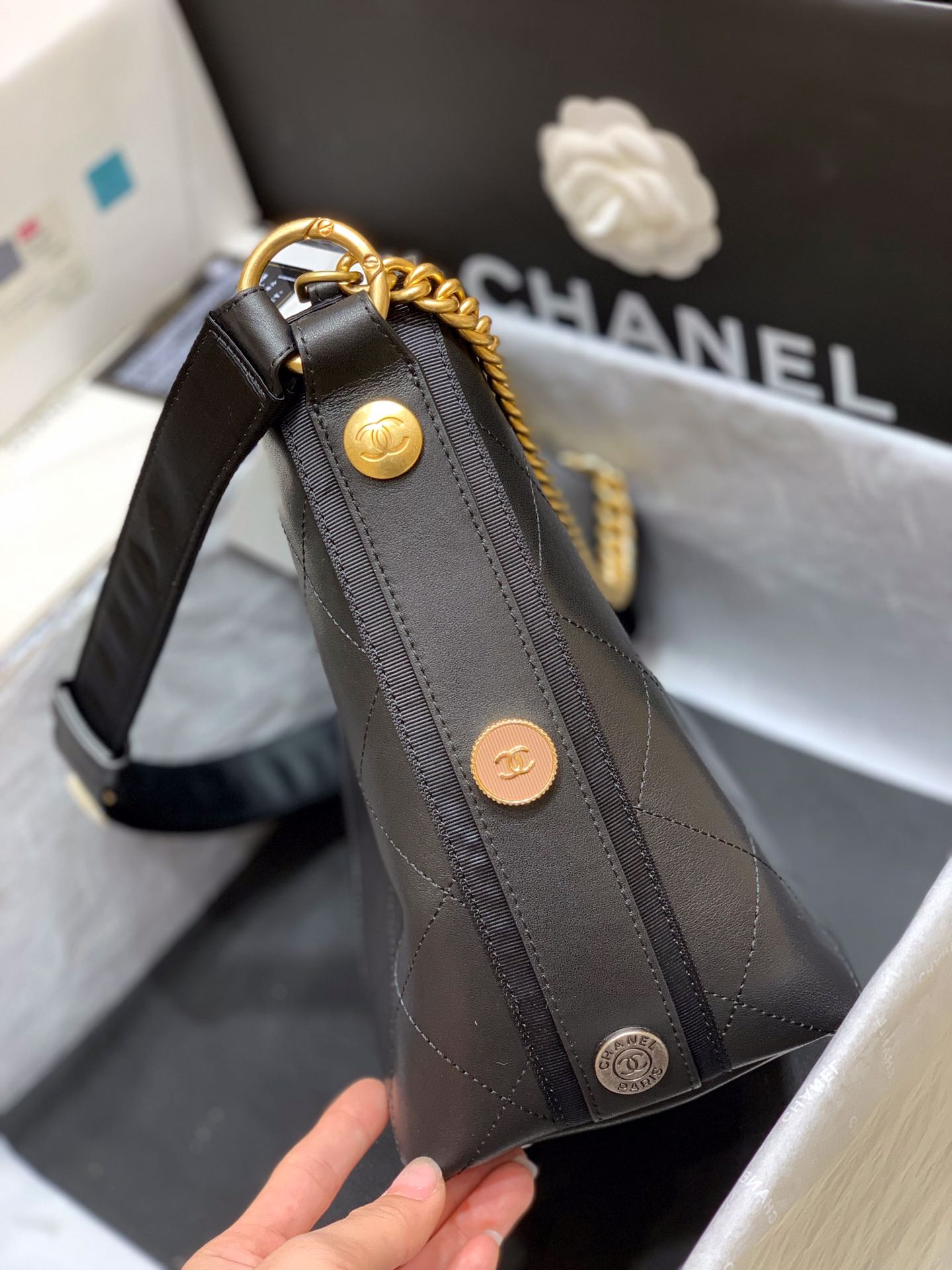 CC Button Up Hobo 23cm Black Cowhide & Grosgrain GHW