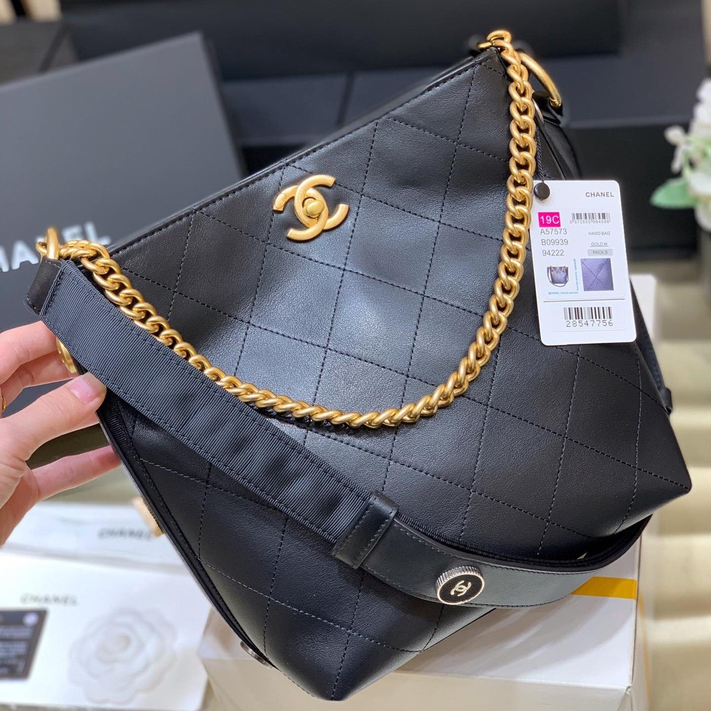 cc 23s hobo bag 26cm black calfskin gold hardware