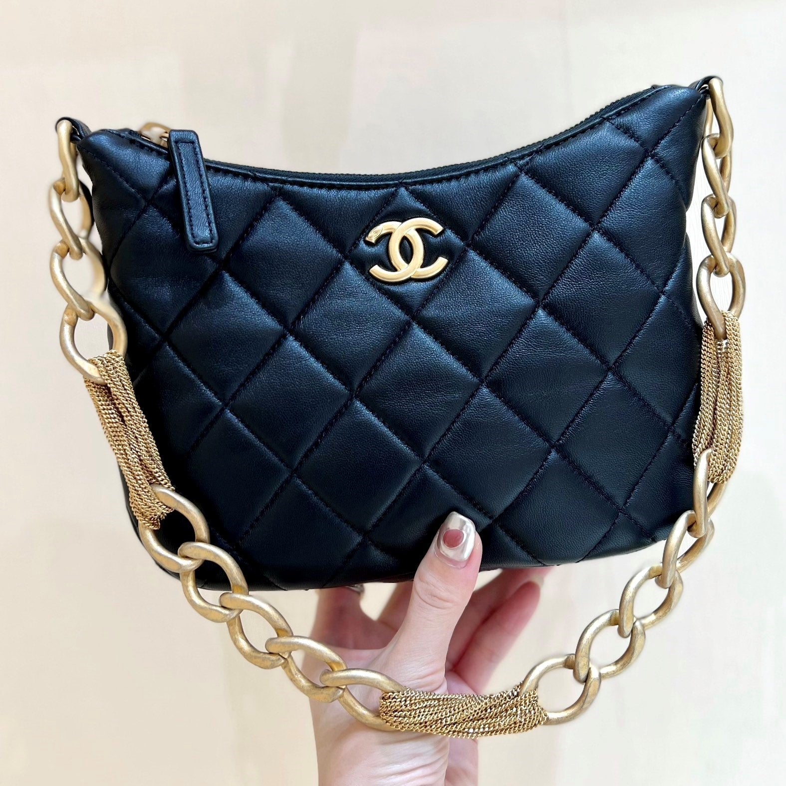 cc 22 hobo black calfskin black hardware
