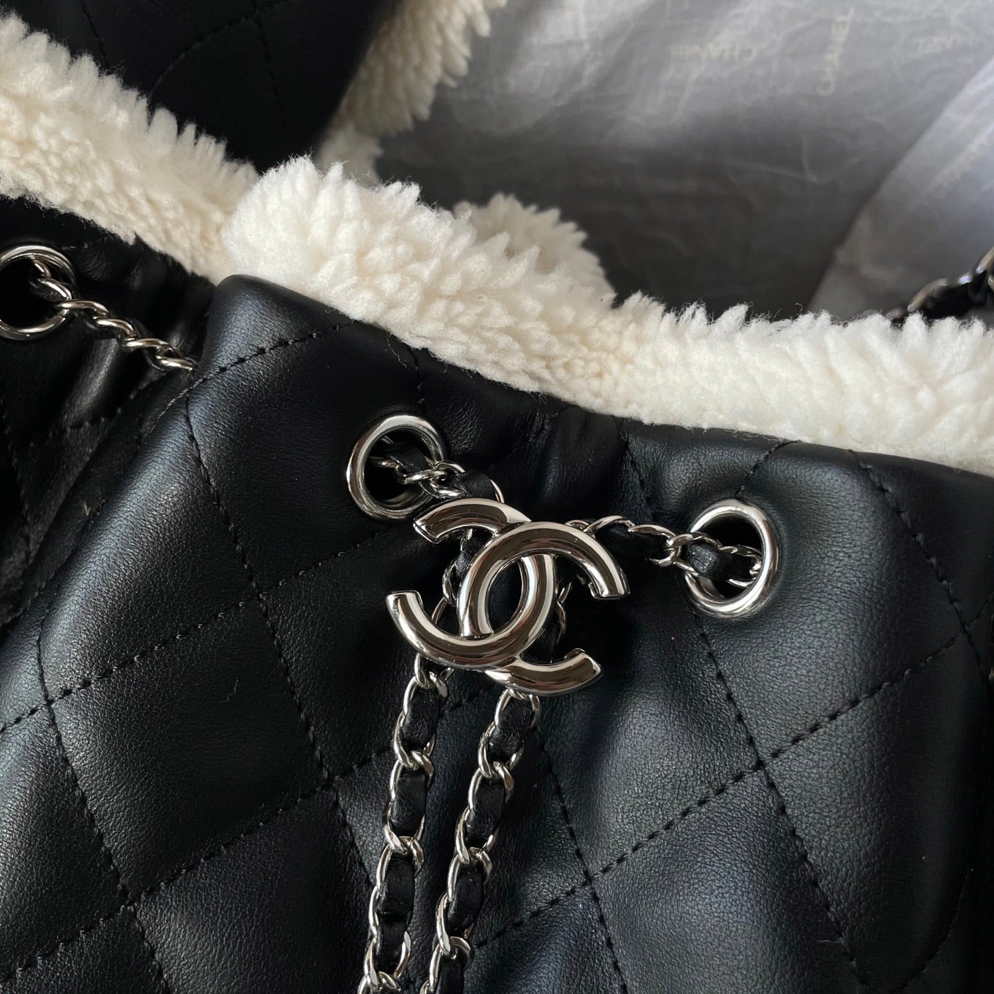 CC 25C Hobo Bag 30cm Black White Lambskin Silver Hardware