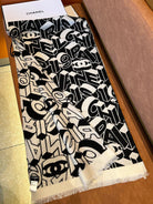 LETTER LOGO 178 CM SCARF IN BLACK MIX WHITE SHEEP WOOL AND SILK 393103