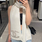 SCARF 180 CM IN WHITE CASHMERE WITH RHINSTONES 393227