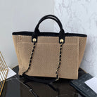 CC 25 Deauville Tote Bag 38cm Beige Black Crochet Suede