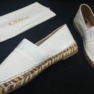 CHLOÉ WOVEN LOAFER IN WHITE DENIM AND COLORFUL RAFFIA