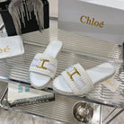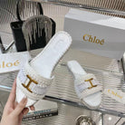 CHLOÉ WOVEN SLIPPER IN WHITE WOOL AND LAMBSKIN GOLD HARDWARE