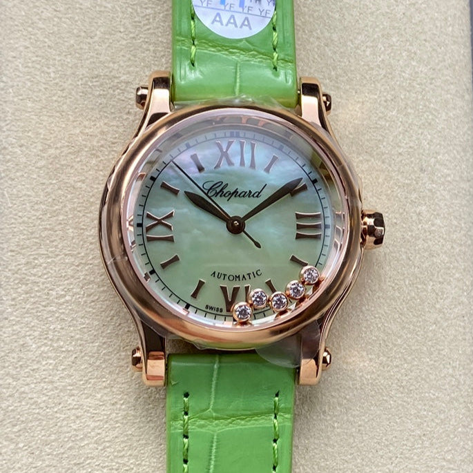 Happy Diamonds 30mm Pink Gold Green Dial