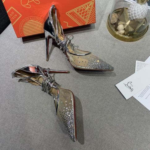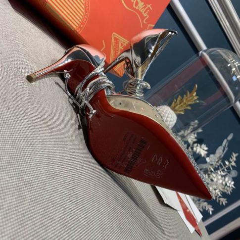CL Kate Strass Degrade Pumps 100mm Suede Silver