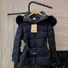 Burberry 25 Fur Collar Plaid Slim-fit Black Jacket Polyester Down
