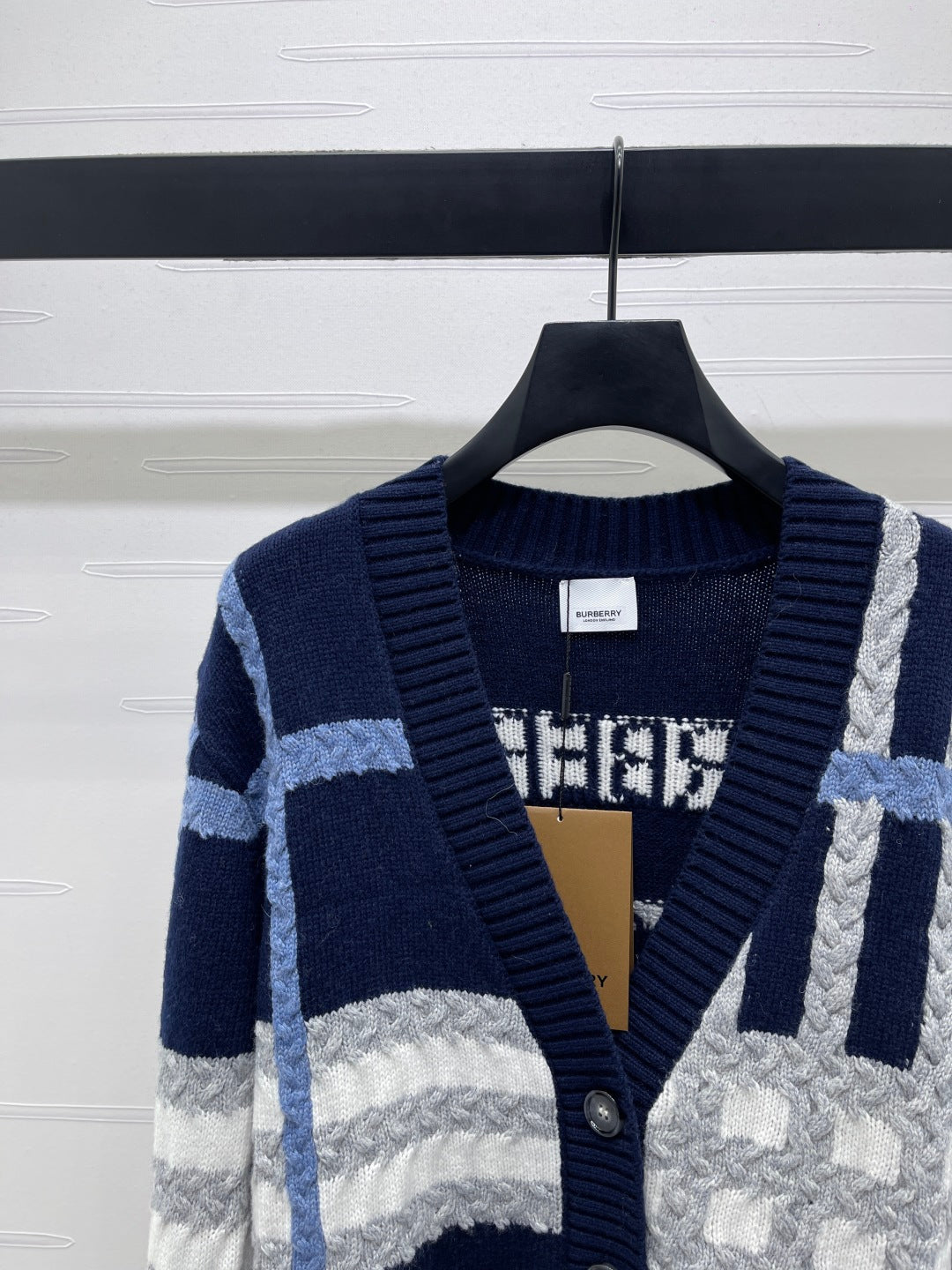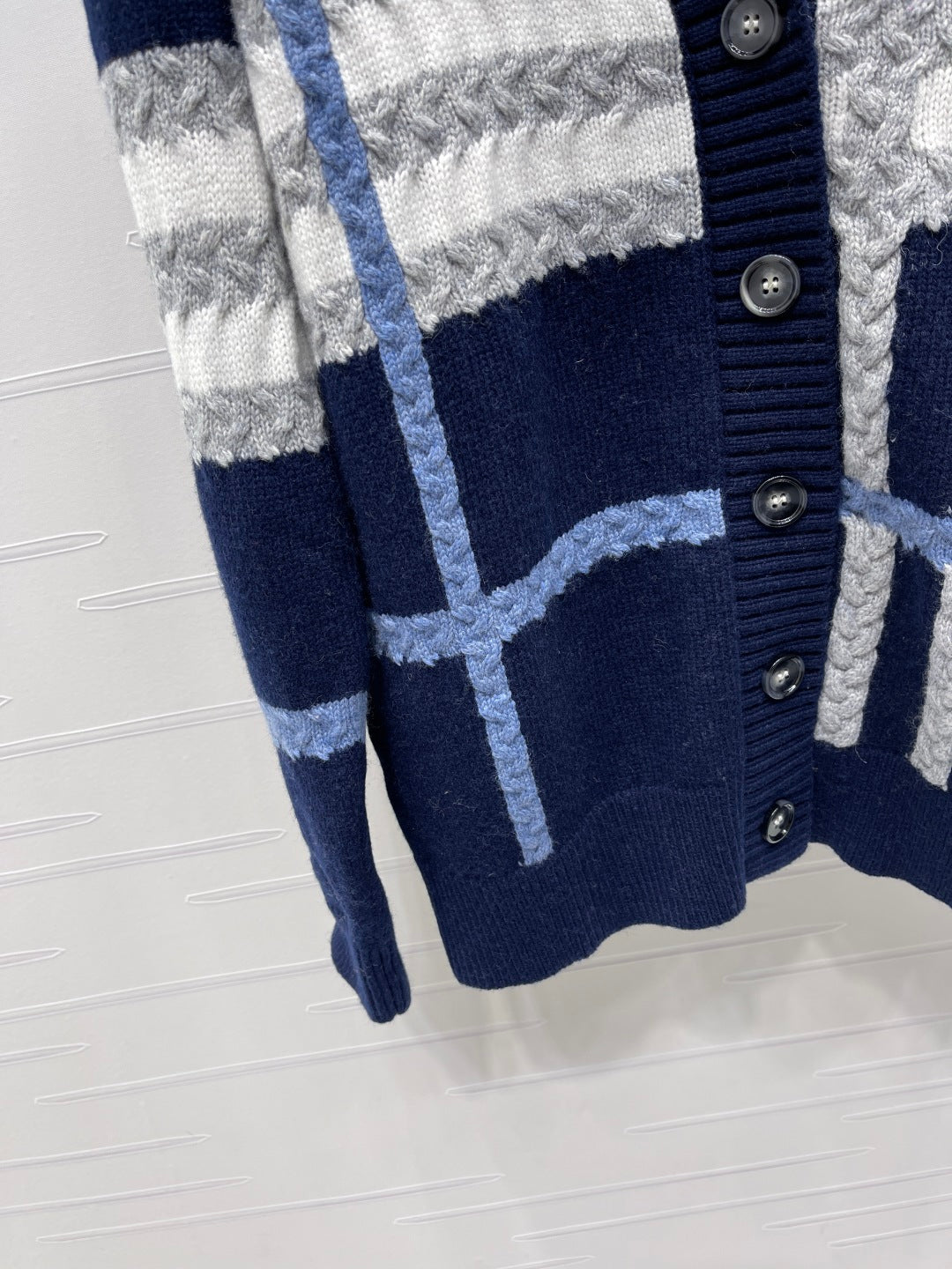 Burberry 25 V-neck Long-sleeved Cardigan Navy Blue Wool Cashmere