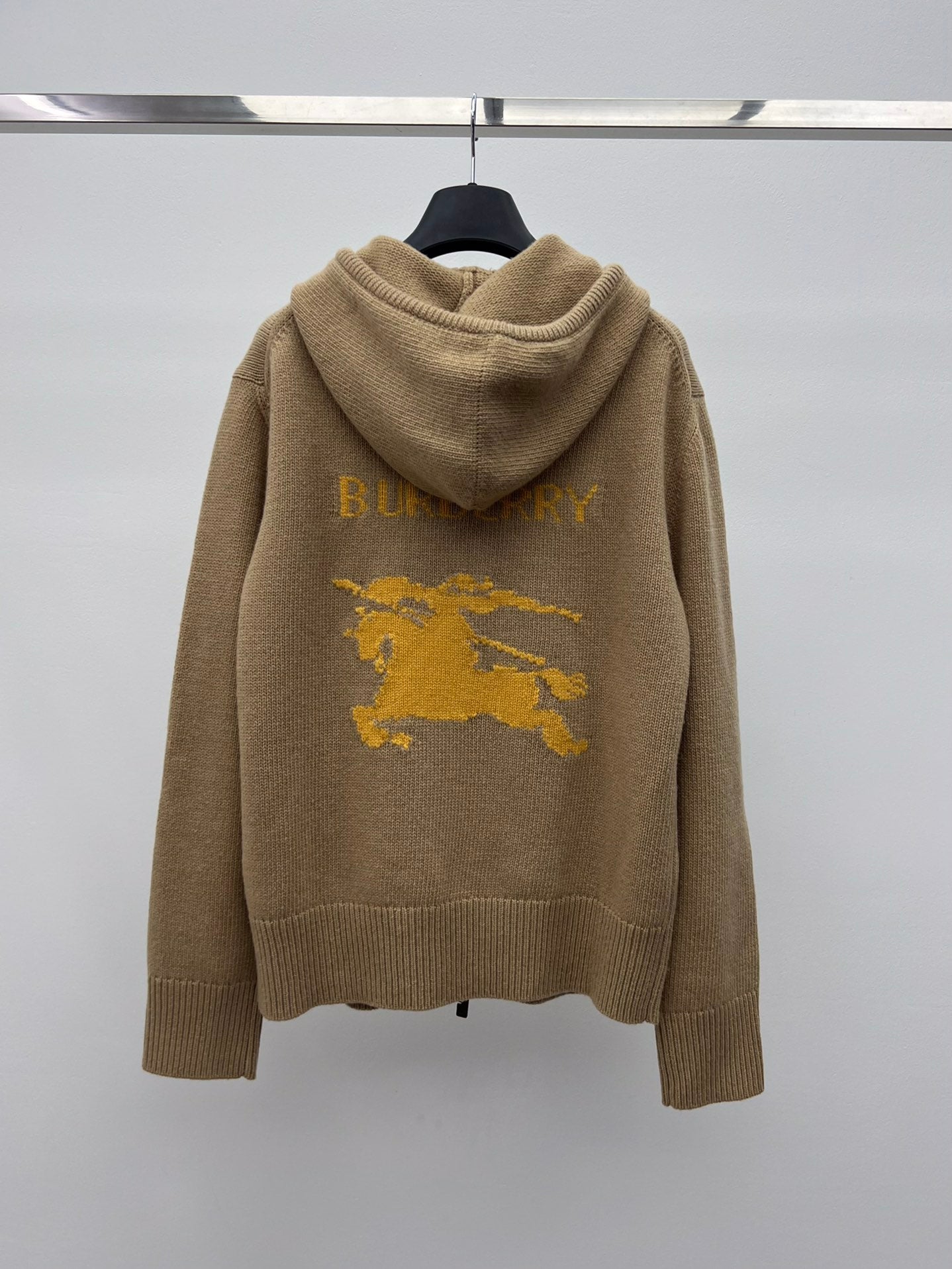 Burberry 25 Zipper-Up Hooded Knit Cardigan Beige Wool Cashmere