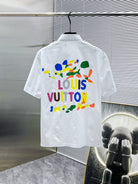LV SHORT-SLEEVED SHIRT IN WHITE COTTON COLORFUL LOGO 238812