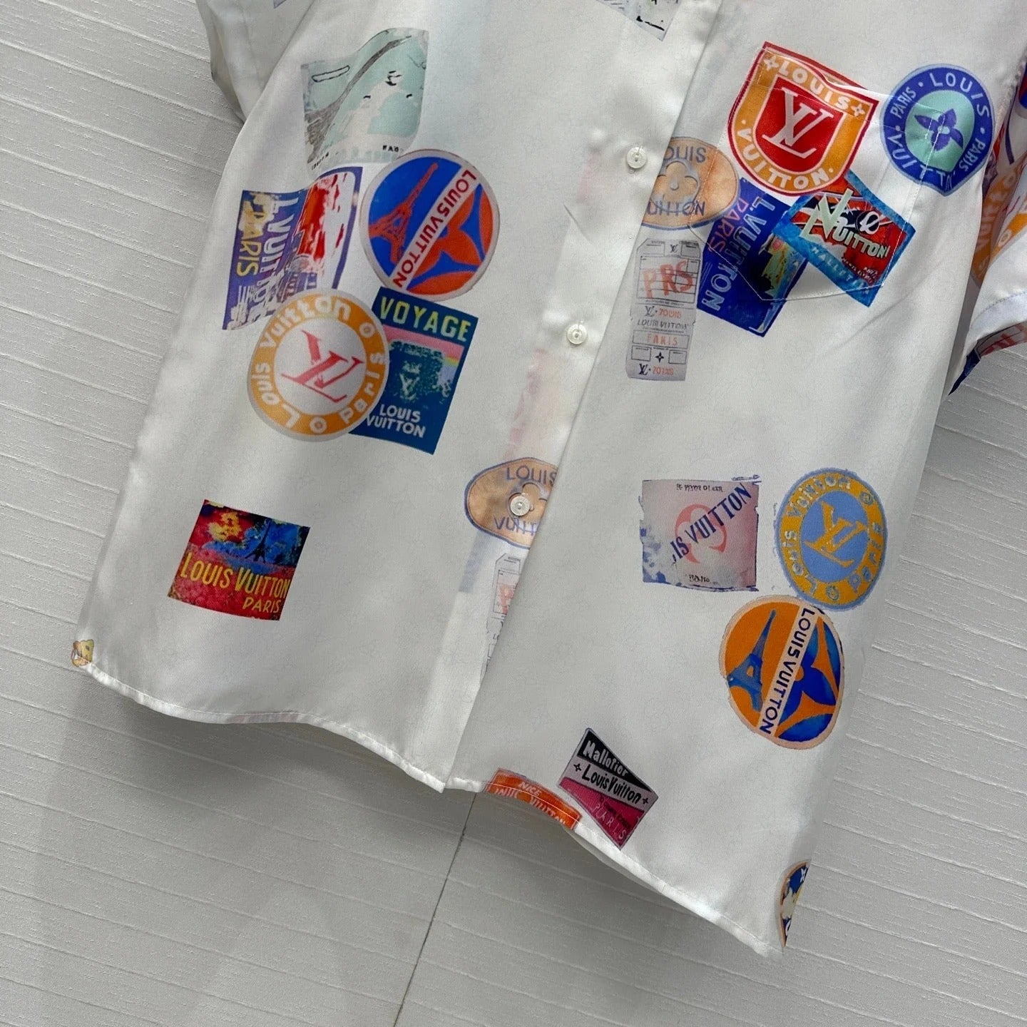 LV SHORT-SLEEVE PRINTED SILK BLOUSE 268226