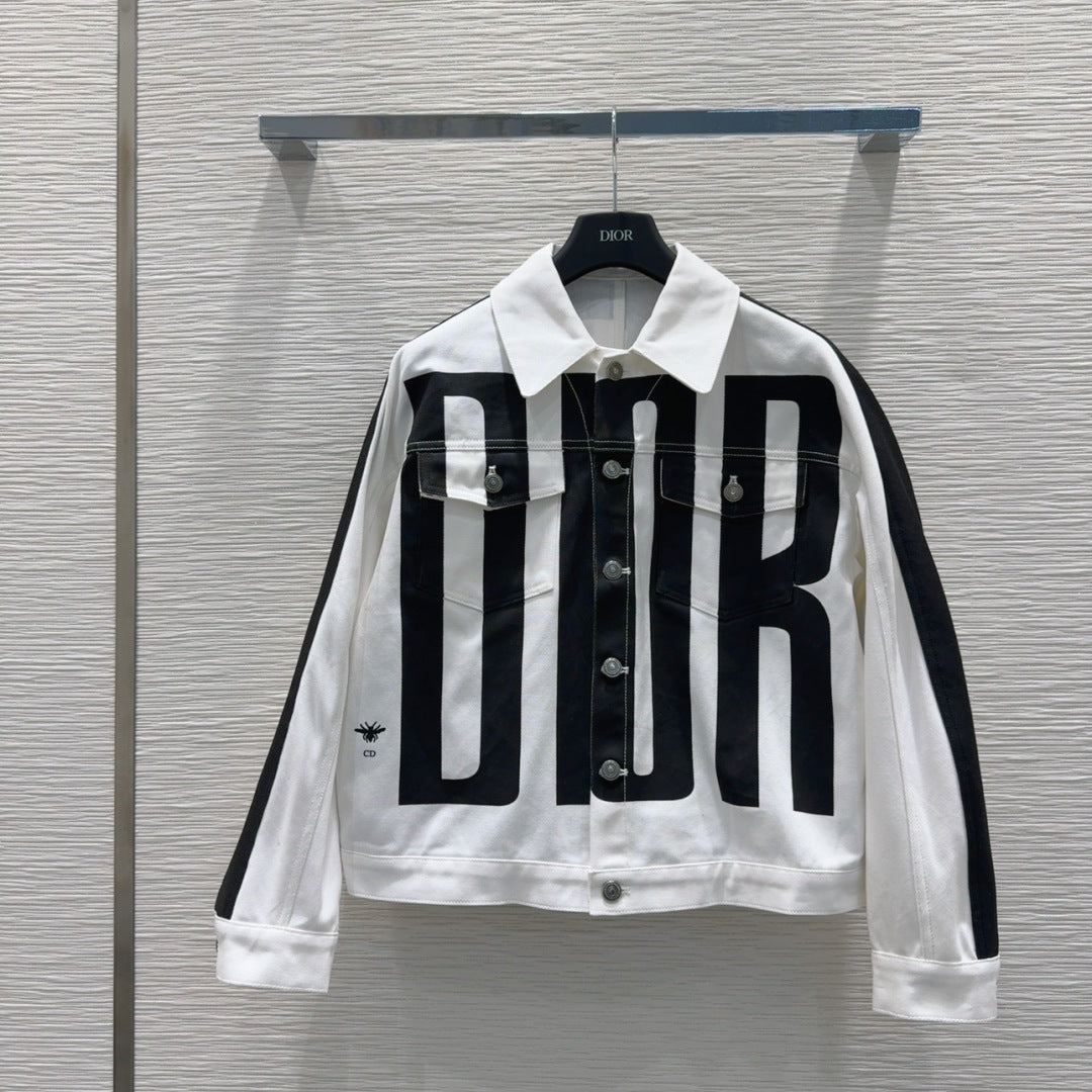 CD 2025 "Dior" Bomber Jacket Black White Cotton