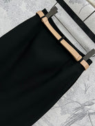 CD 25 A-line Pleated Long Skirt With Belt And Zipper Black Polyester Cotton
