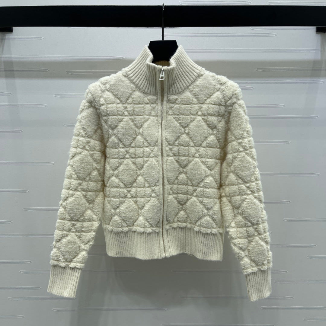 CD 25 Cardigan Stand Collar Light Beige Wool