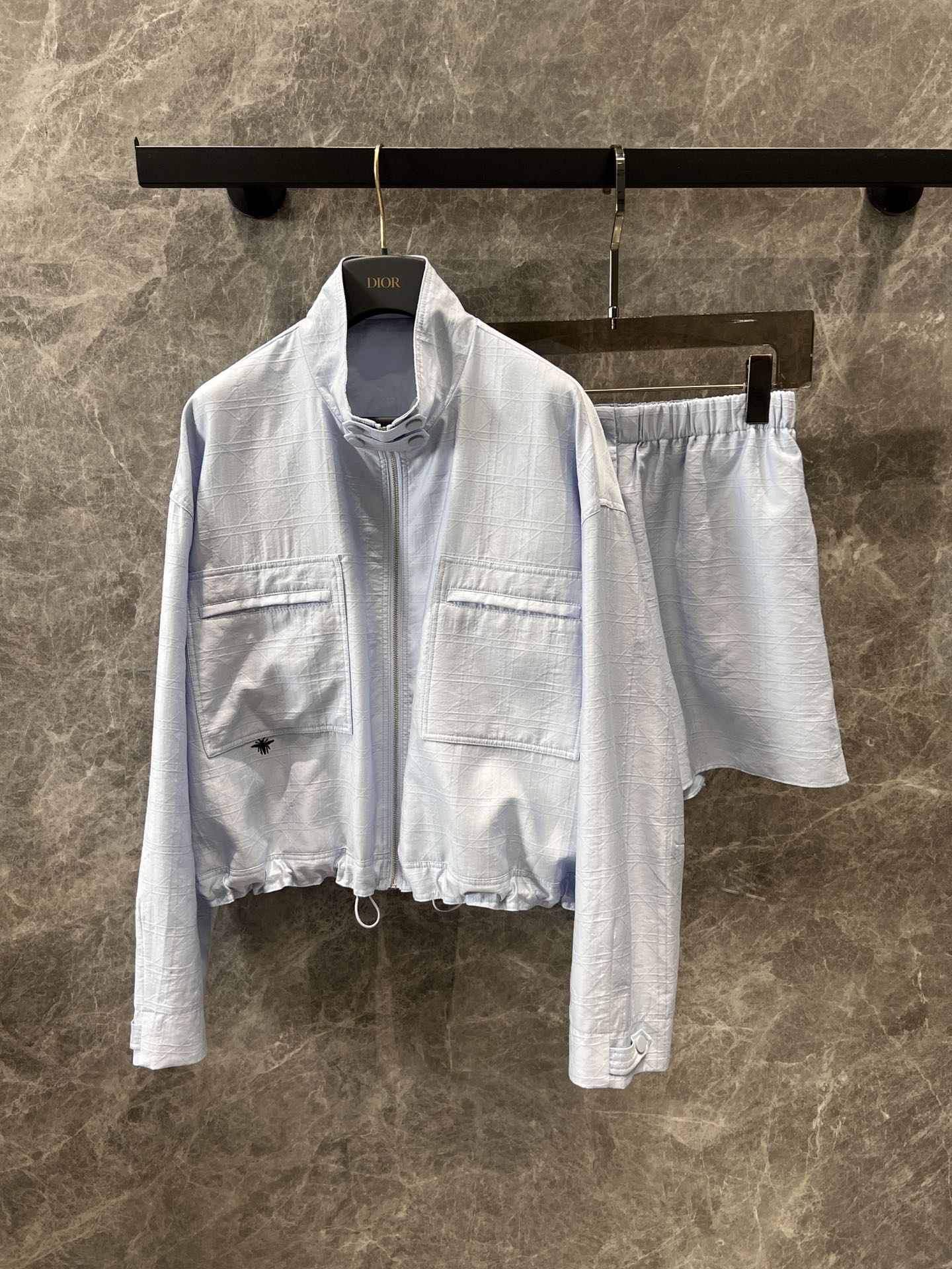 CD 25 Embroidered Zipper Jacket and Shorts Set Blue Tencel Polyamide 215973