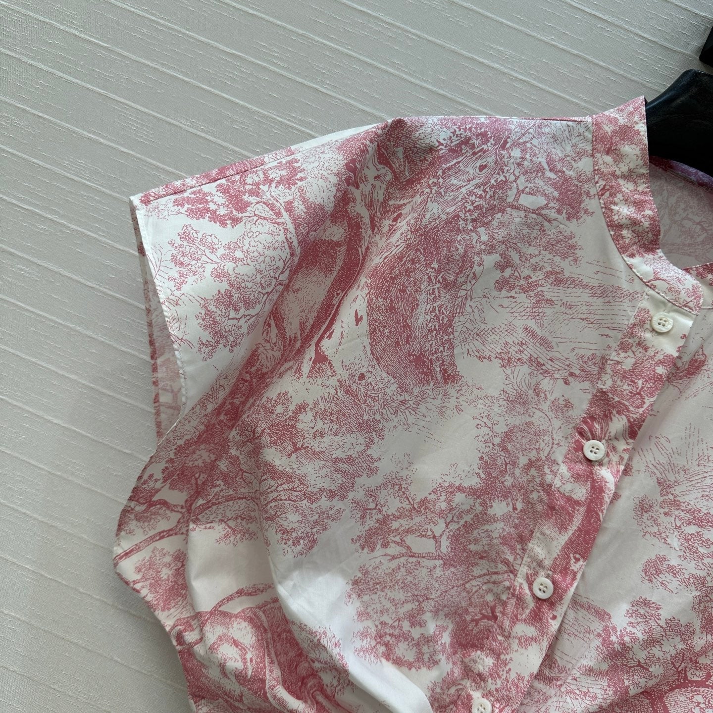 CD 25 Flying Sleeve Short Shirt White Pink Cotton