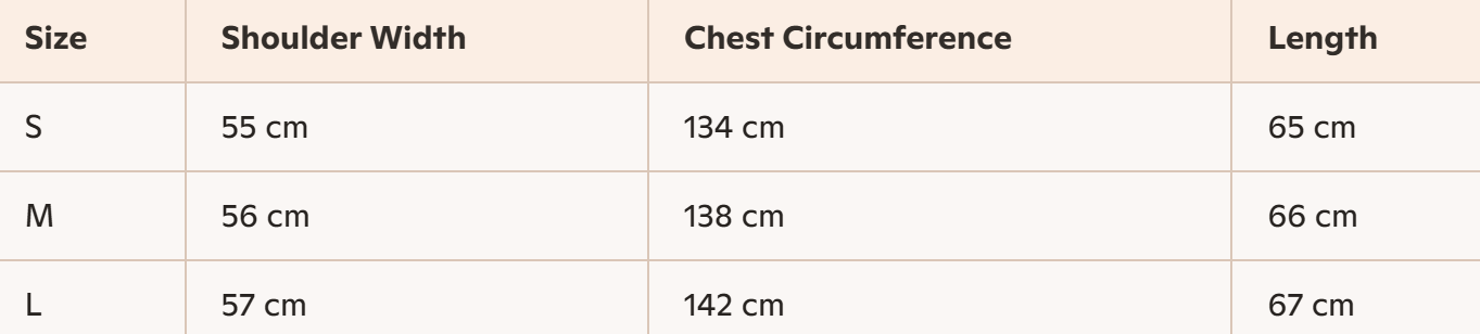 - For more information, please see the size guide below