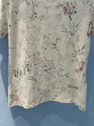 CD 25 Ink And Floral short Sleeves T-shirt Beige Cotton Linen