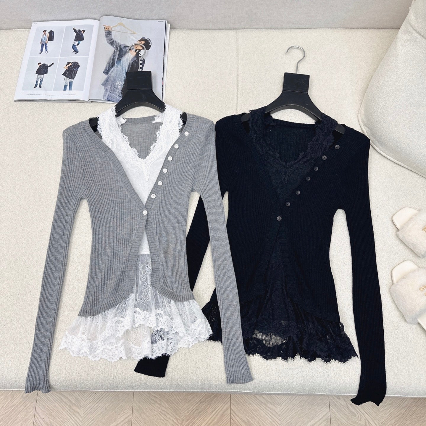 CD 25 Lace Splicing Two-piece Sweater Wool 598663