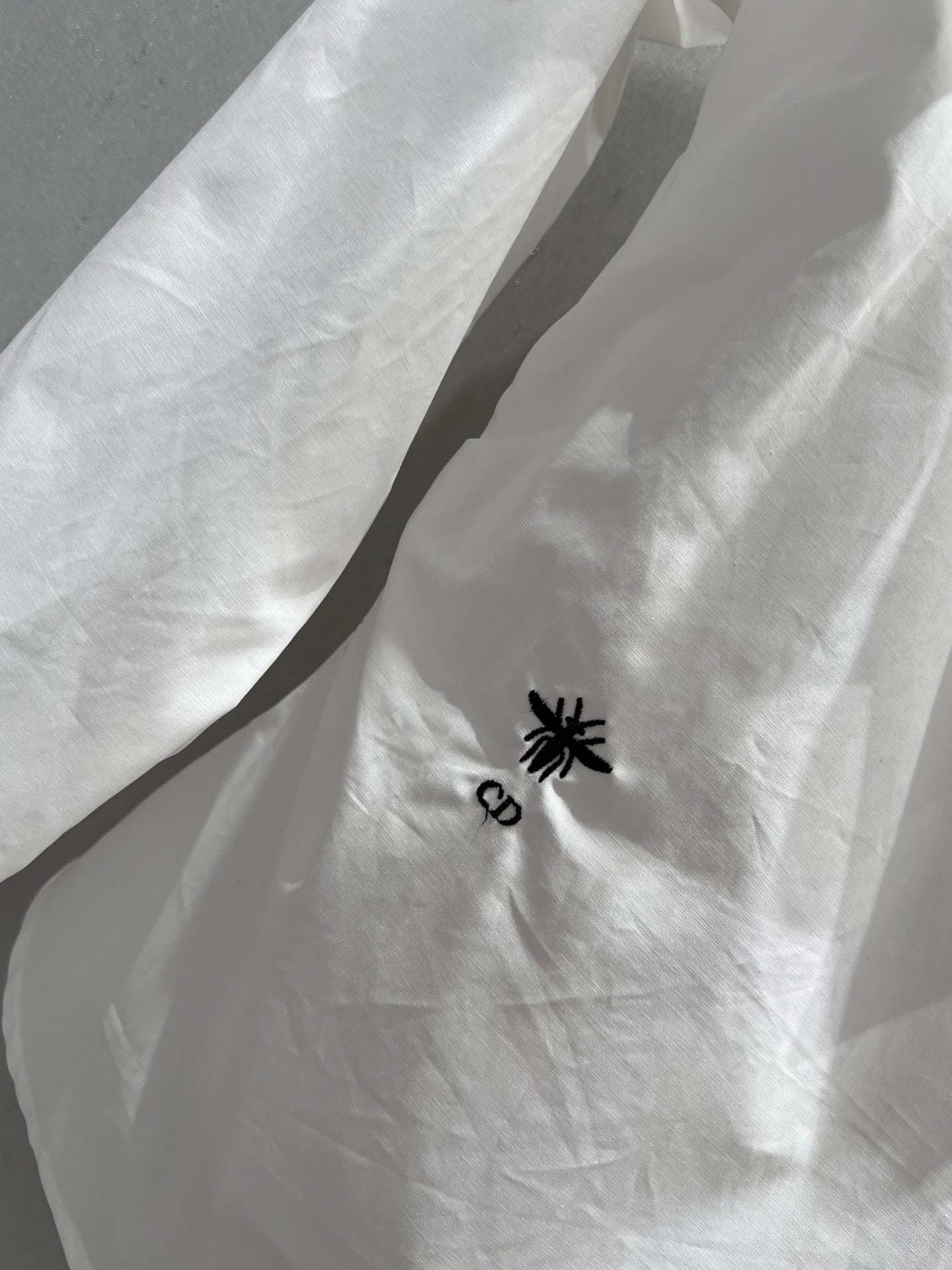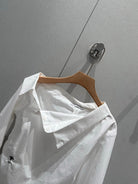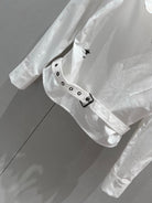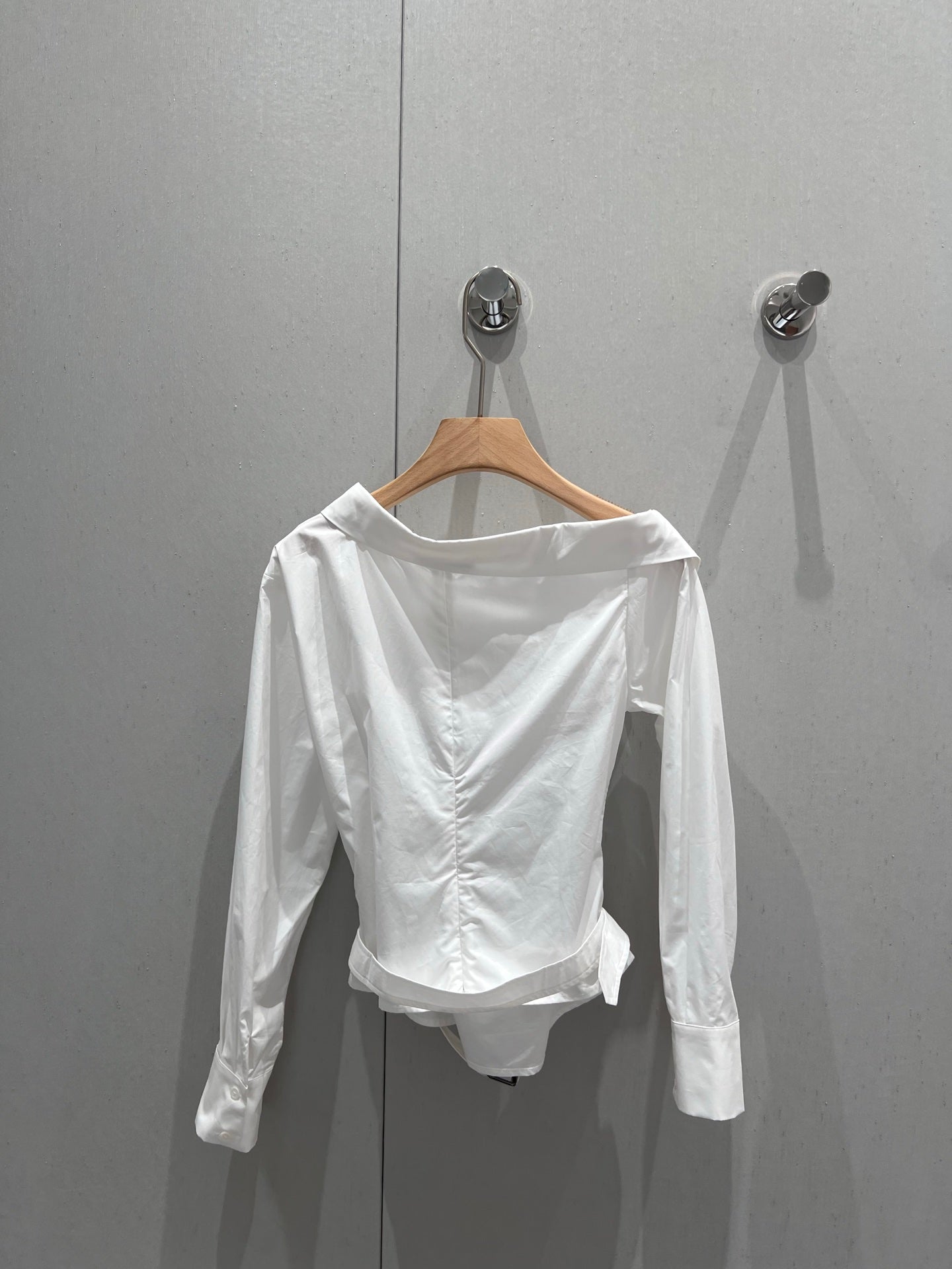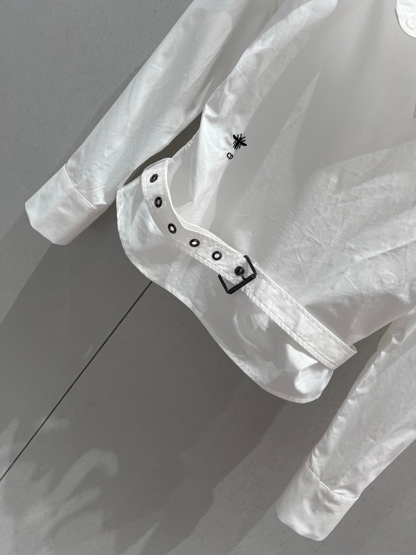 CD 25 Off-shoulder Pleated Belt Short Shirt White Cotton 217596