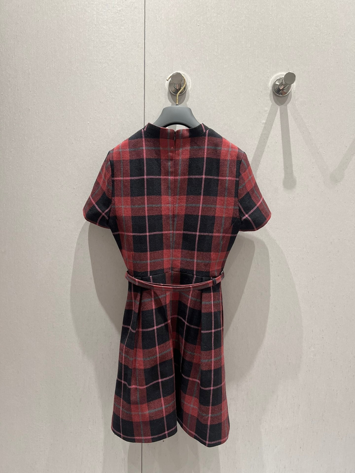 CD 25 Plaid Short-sleeved Dress Black Red Sheep Wool
