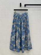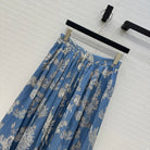 CD 25 Pleated Flared Forest Long Skirt Blue White Cotton