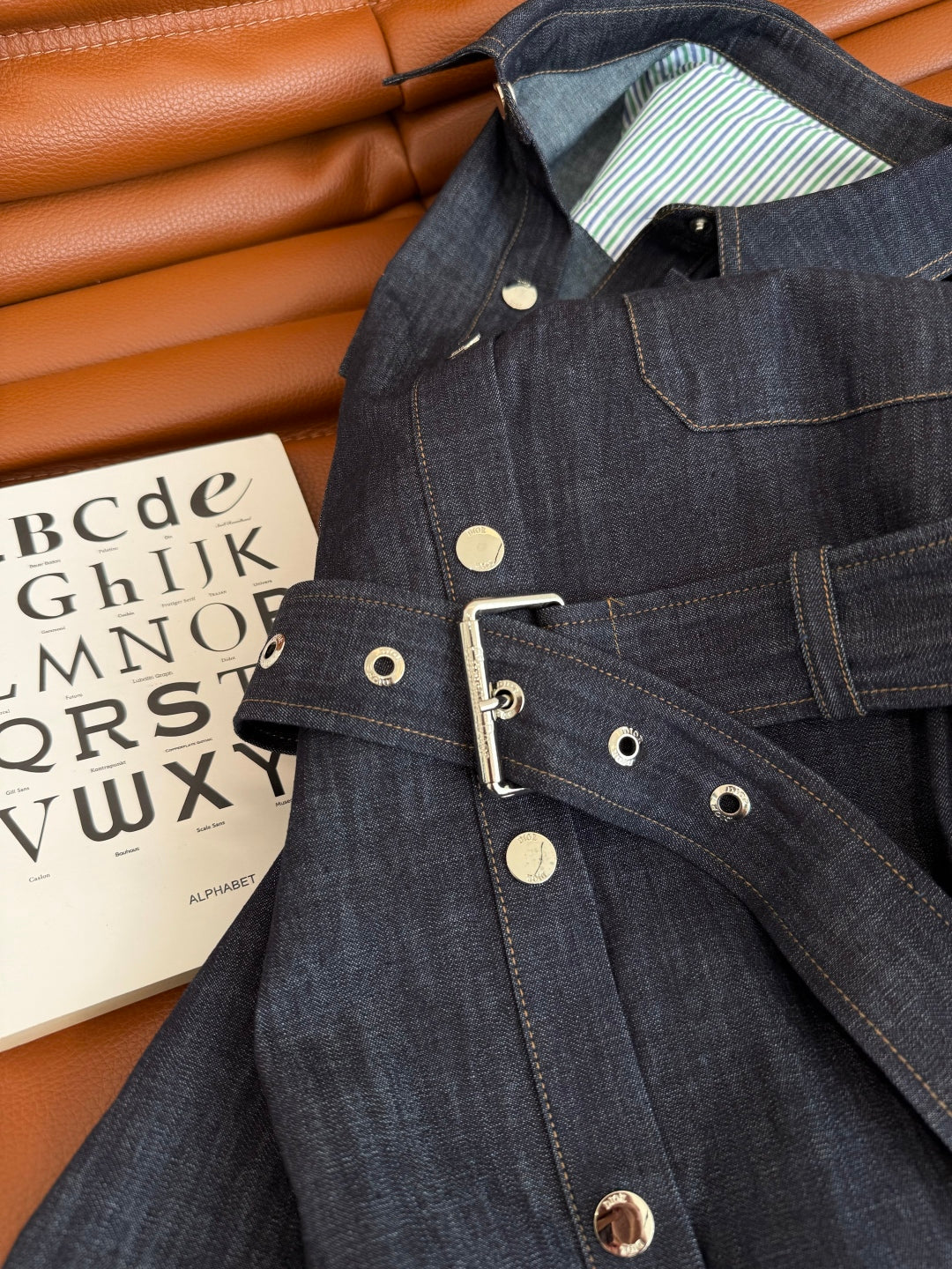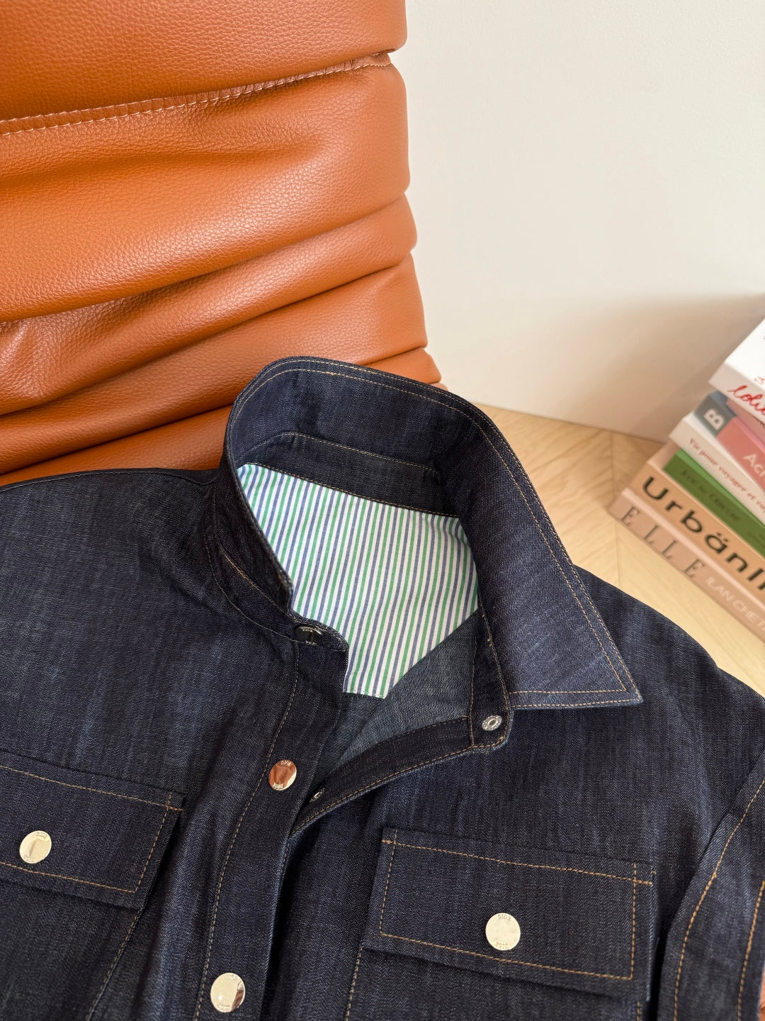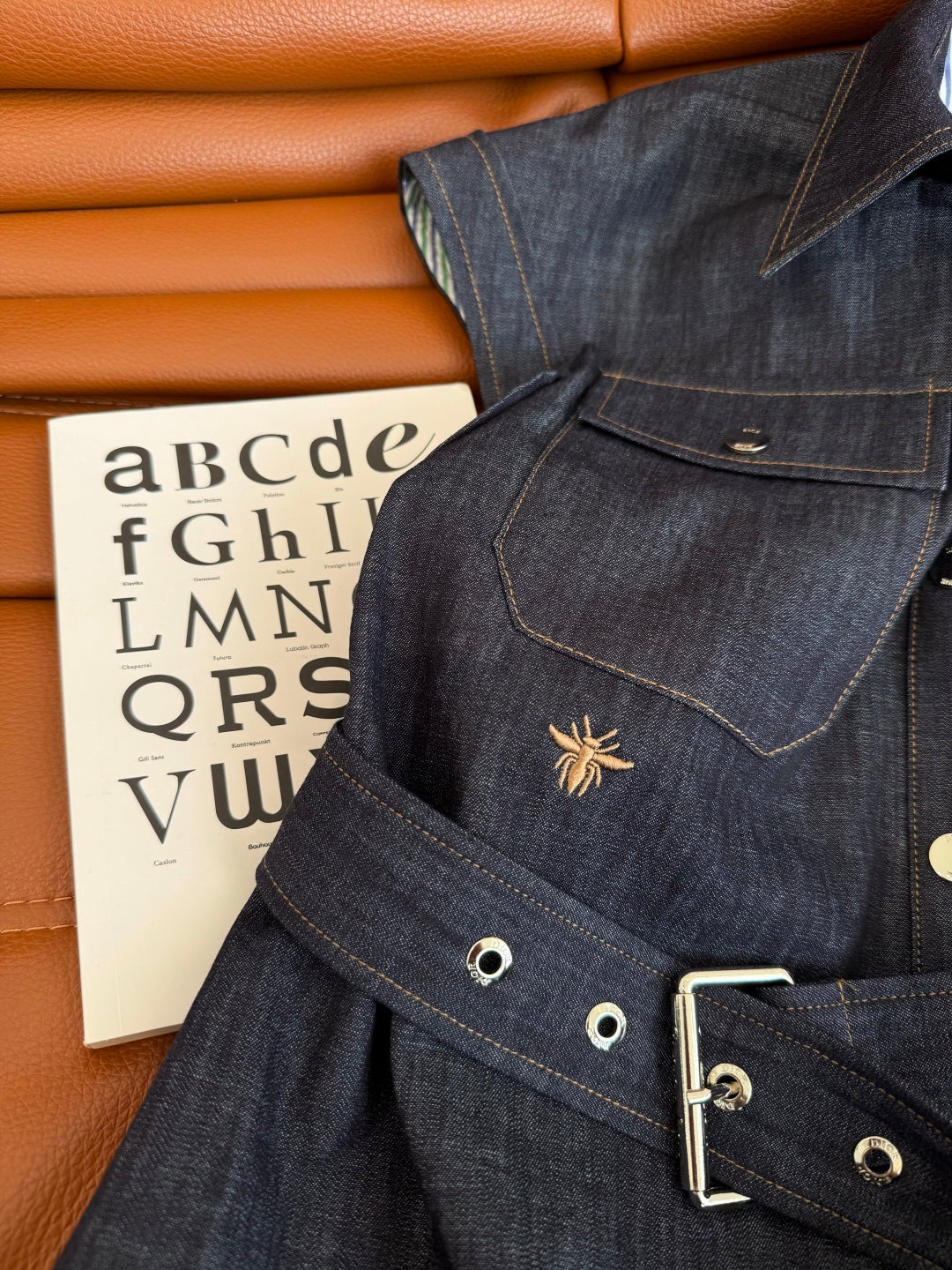 CD 25 Short-sleeved Denim Dress Indigo Blue Cotton