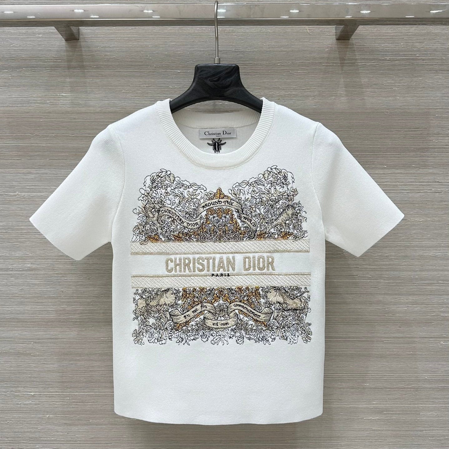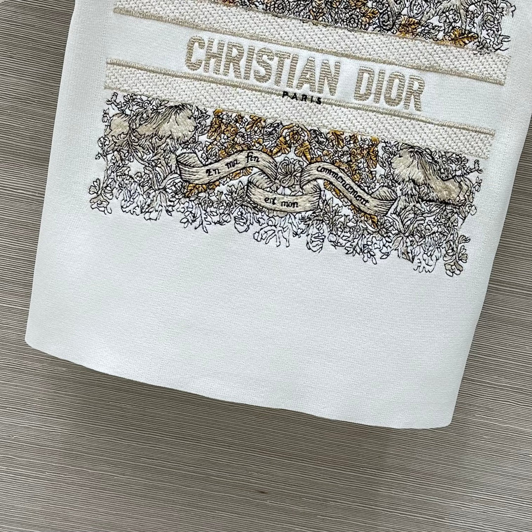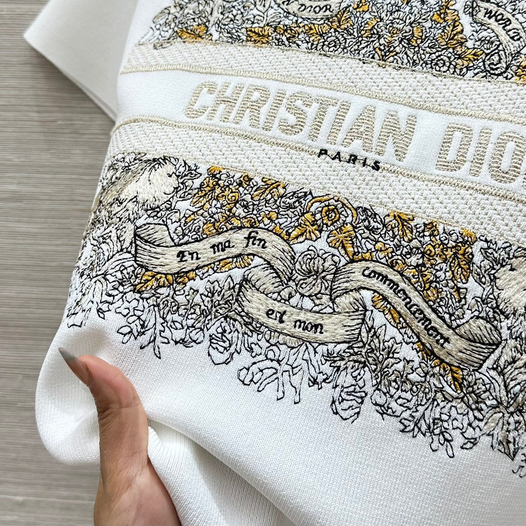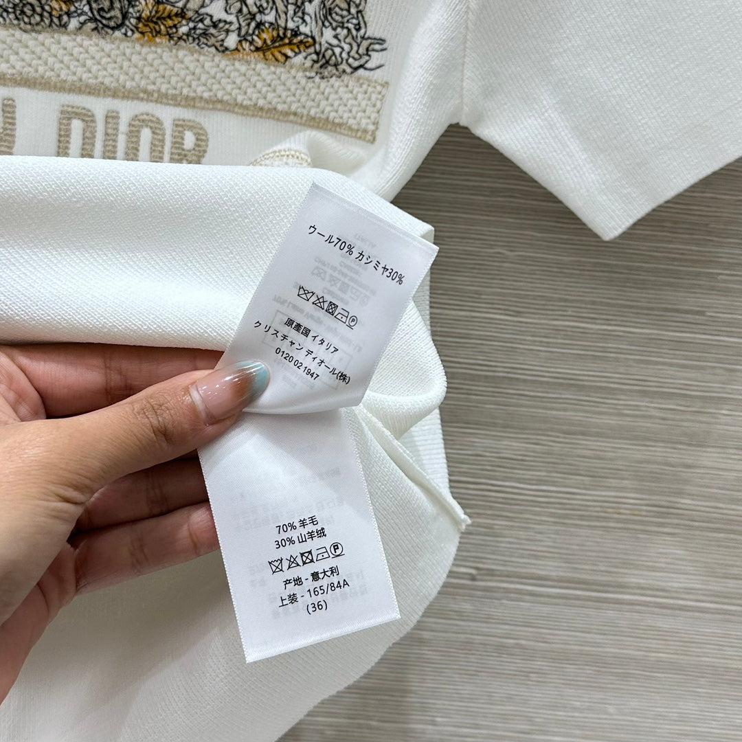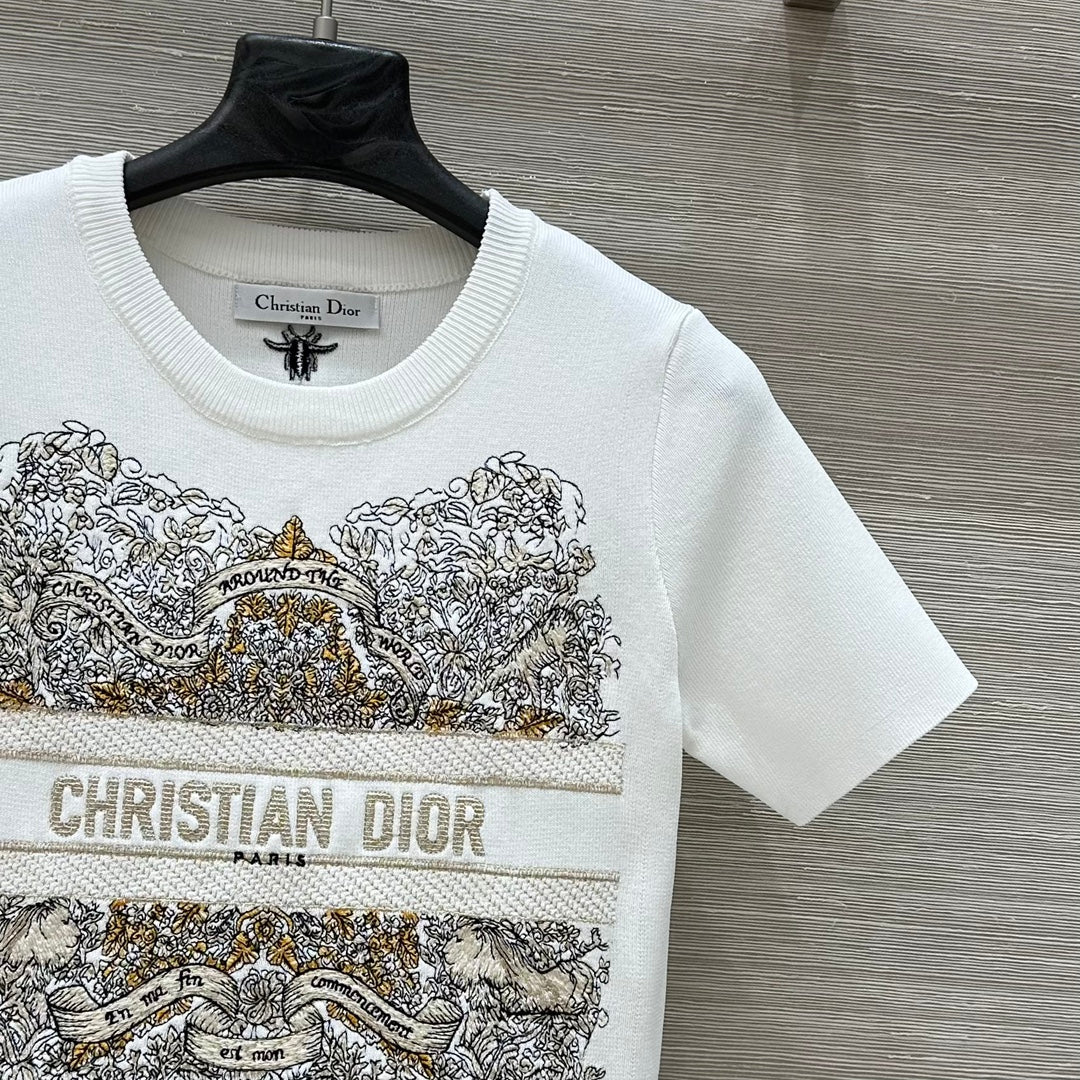 CD 25 Star Embroidery Knitted Short-sleeved Top White Tencel Wool