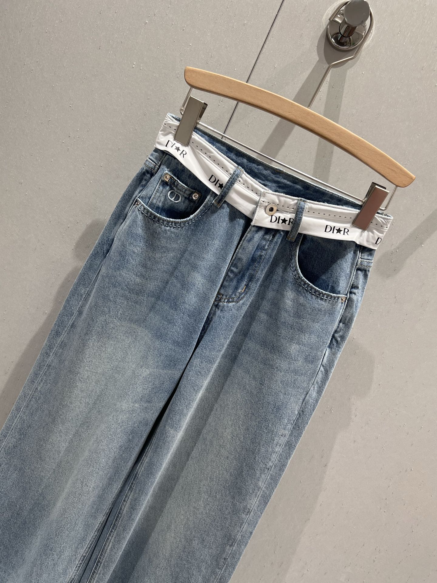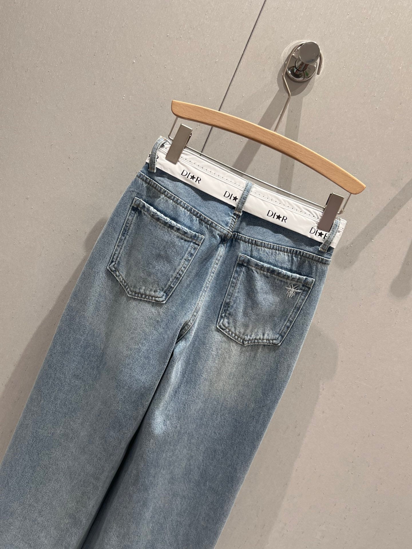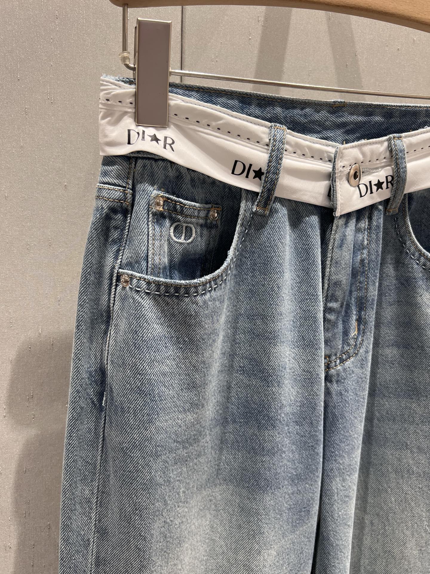 CD 25 Waistband Denim Pants Blue Cotton Polyester 217804