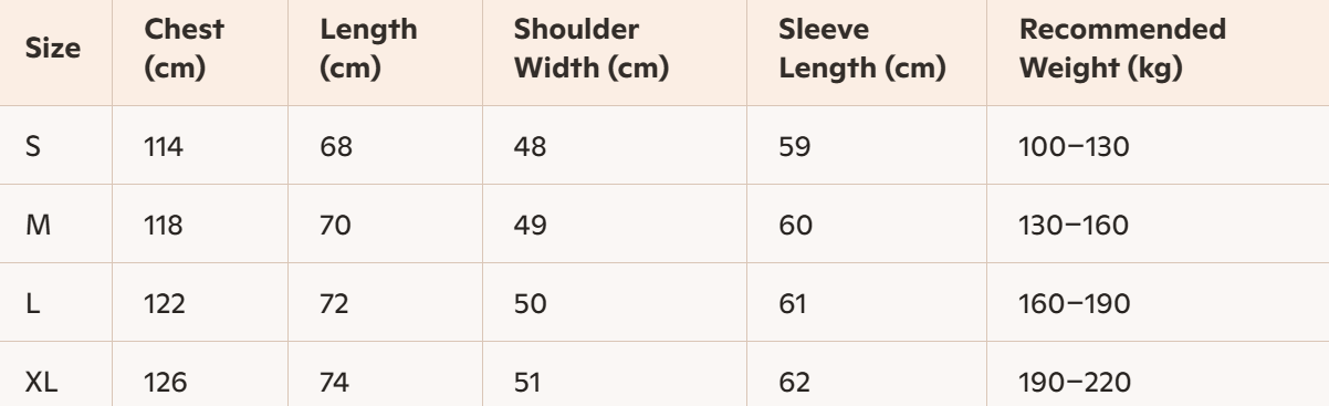 - For more information, please see the size guide below
