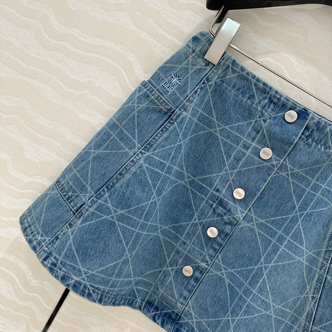 CD Short Skirt Retro Blue Cotton