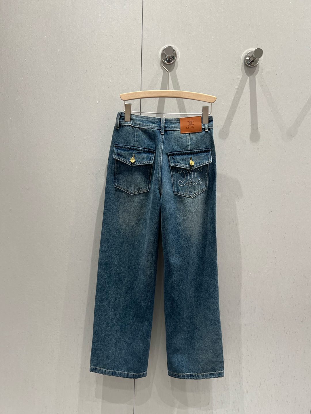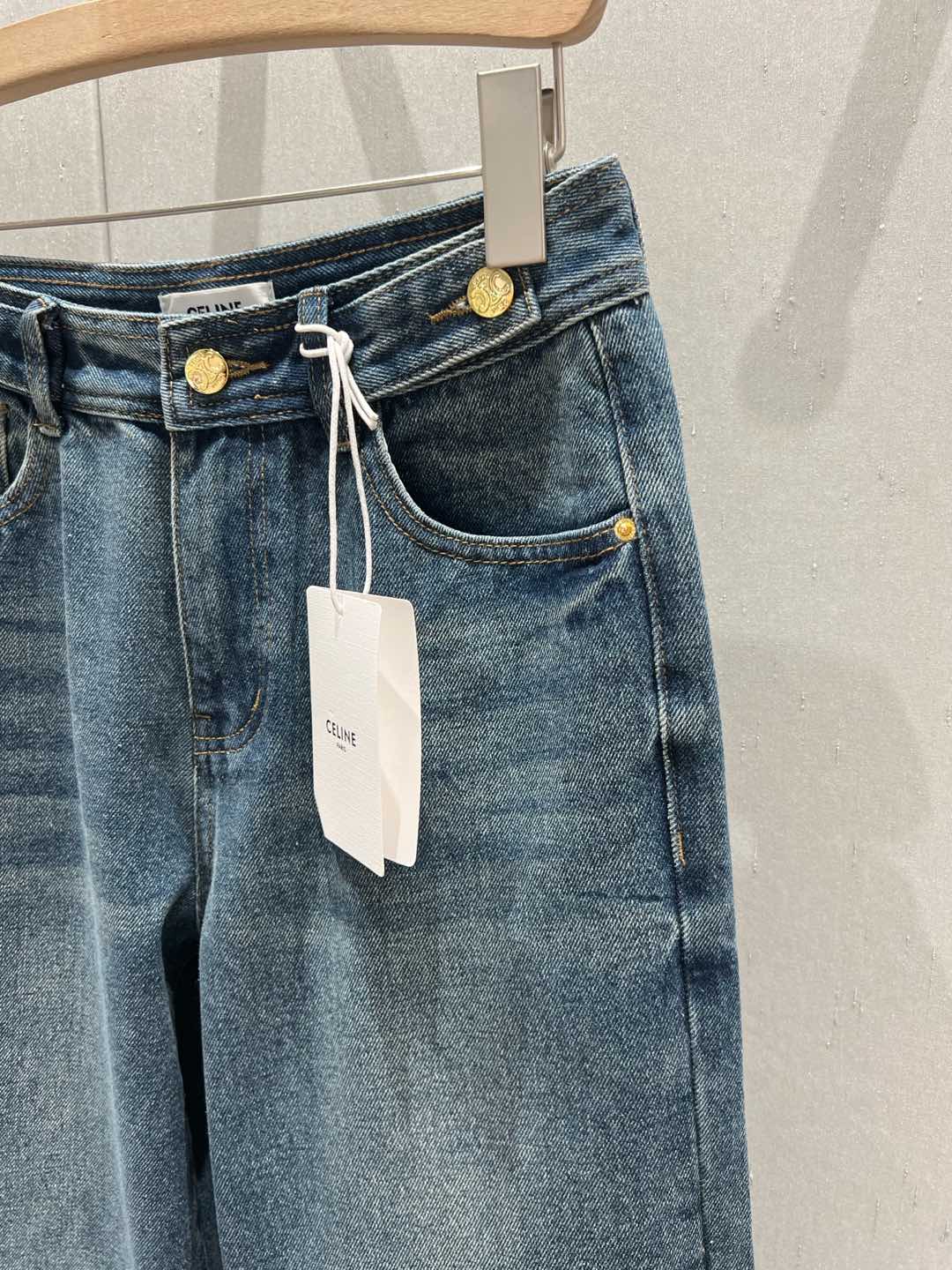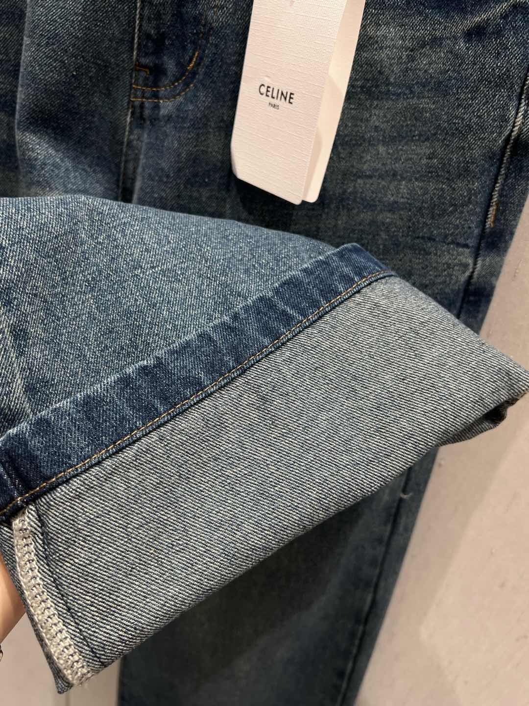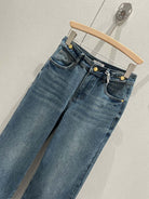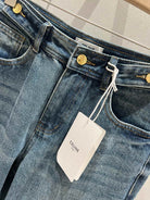 Celine 25 Pattern Embroidered Straight Jeans Blue Cotton
