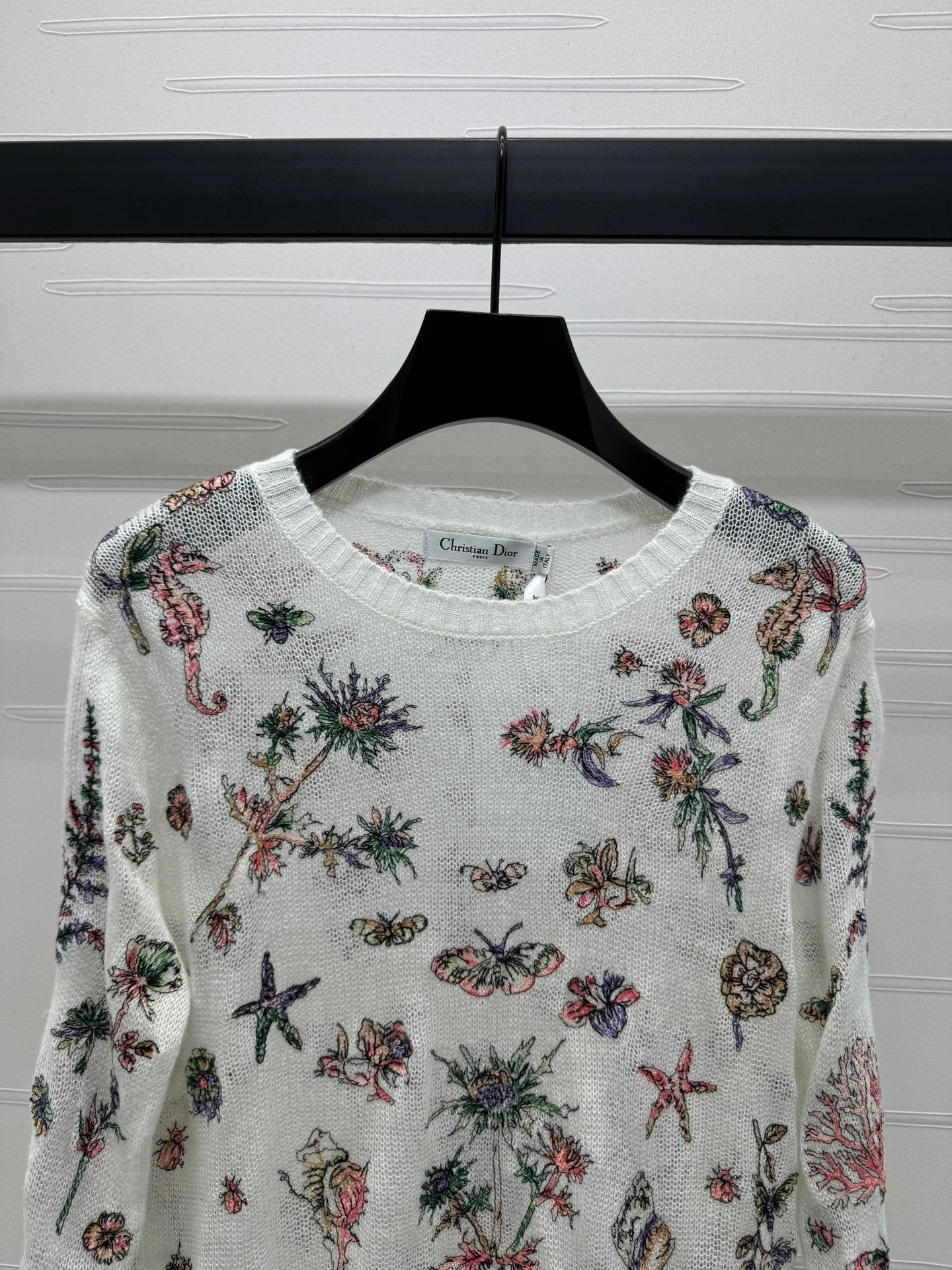 DIOR FLORAL EMBROIDERED KNITTED LONG-SLEEVE TOP 276696