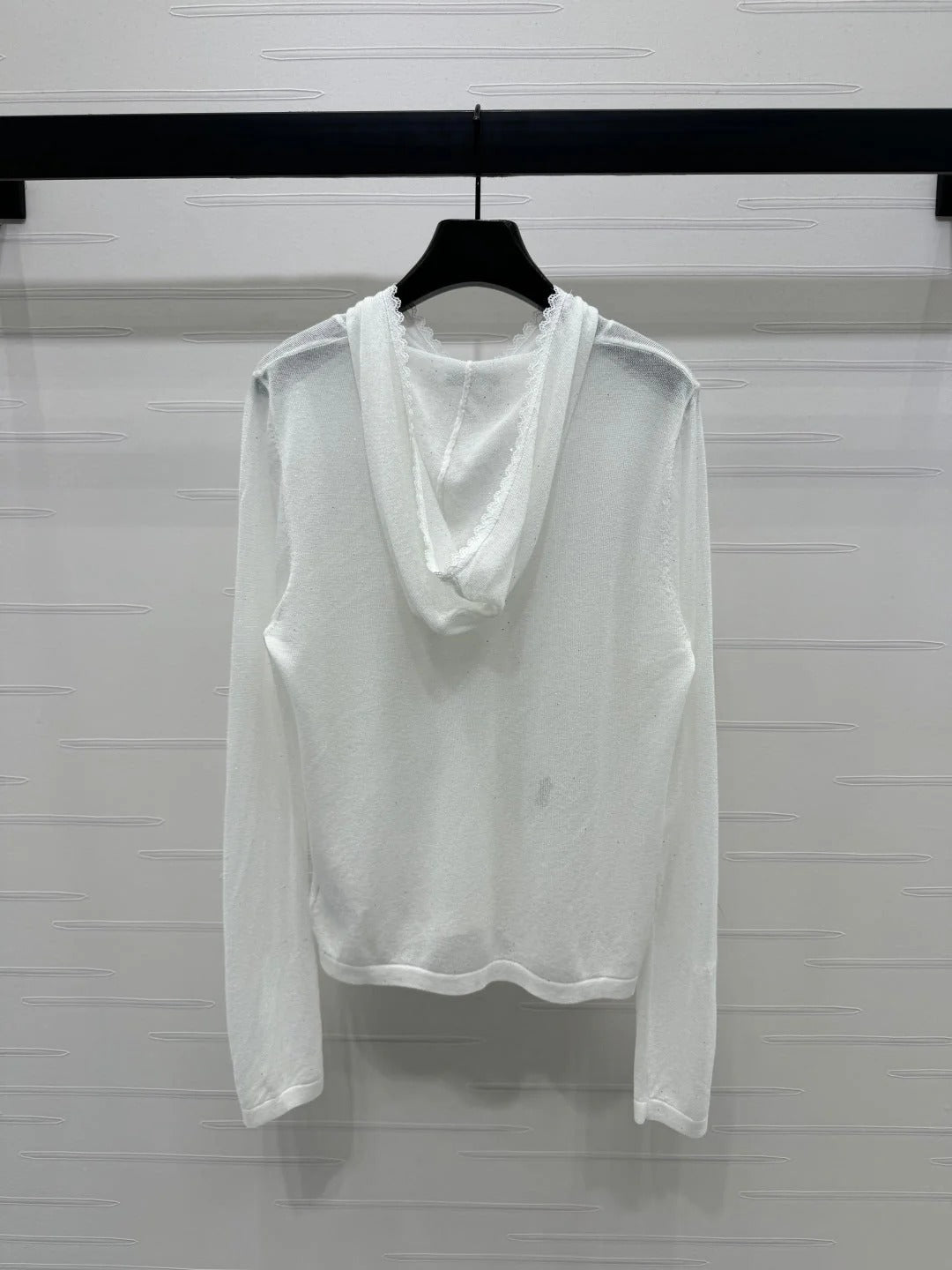 DIOR LACE-KNIT LONG-SLEEVE HOODIE WHITE 274970