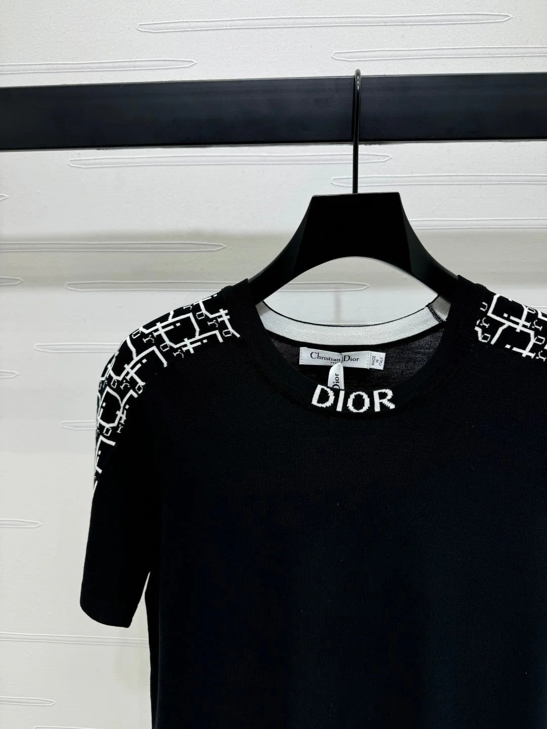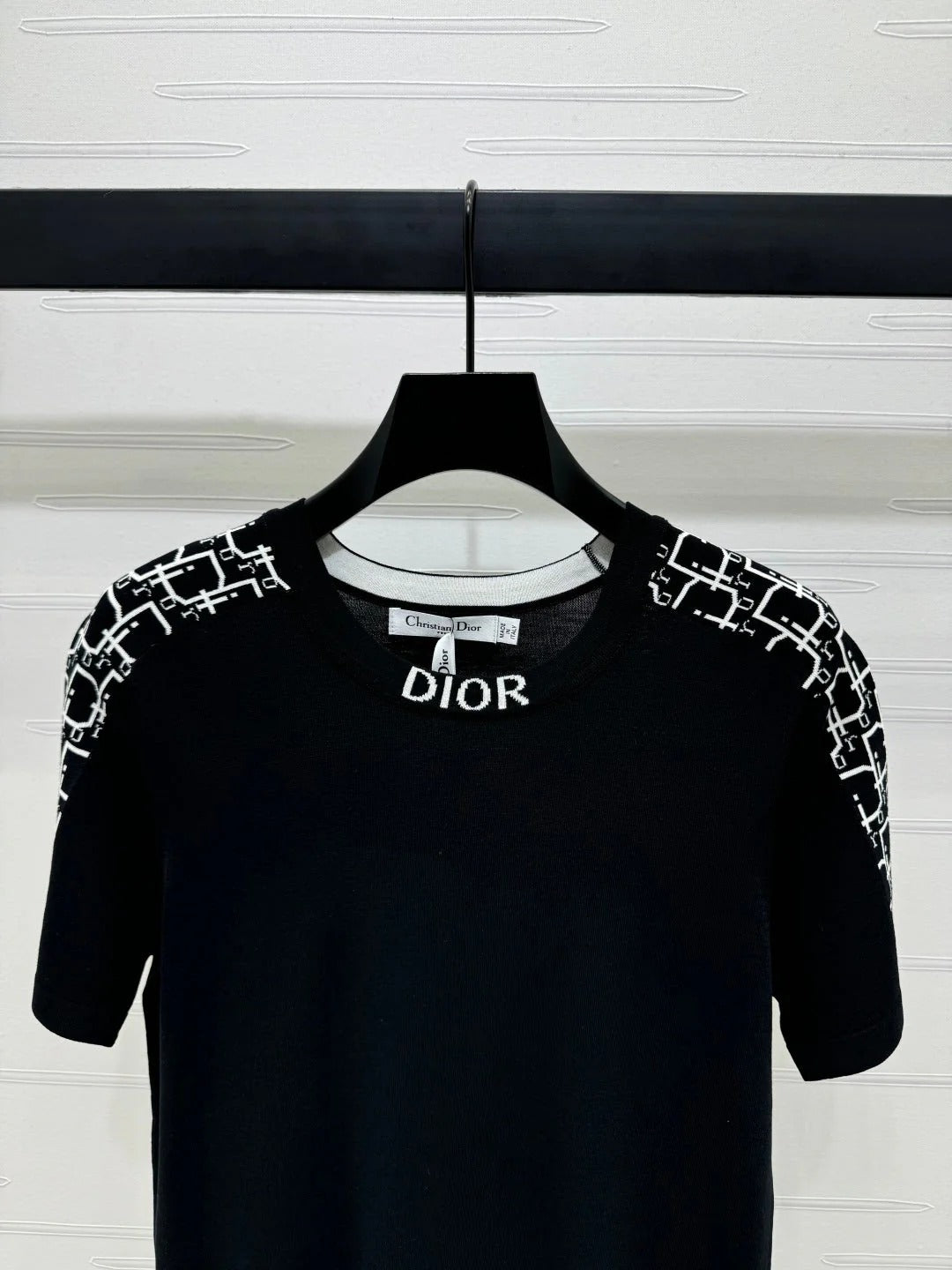 DIOR SHORT-SLEEVE JACQUARD KNIT TOP 274855