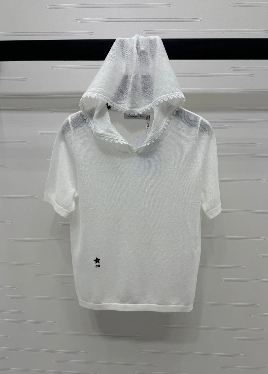 DIOR SHORT-SLEEVE LACE-KNIT HOODIE 274811