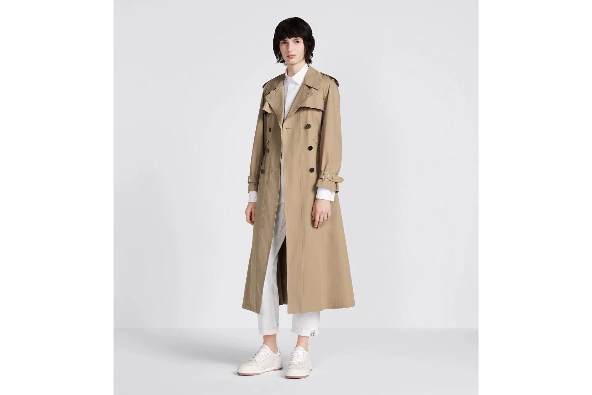 Trench Coat Beige Cotton Gabardine